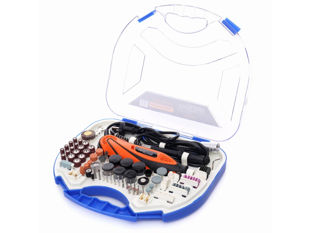 Obsah balení: • Mini bruska-vrtačka 270 W KD10753 • Uživatelský manuál • Originální balení • Ohebný hřídel s držením na příslušenství • Brusné kotouče pro řezání • Vřetena pro upevnění brusných kotoučů • Brusné pásy • Držáky na pásy • Rytinové špičky • Pouzdra • Brousky a reduktory • Dláta • Brousky • Filce • Kotouče • Frézy • Vrtáky • Brusný papír • Štětce • Drátěnky • A mnoho dalších velmi užitečných doplňků |
