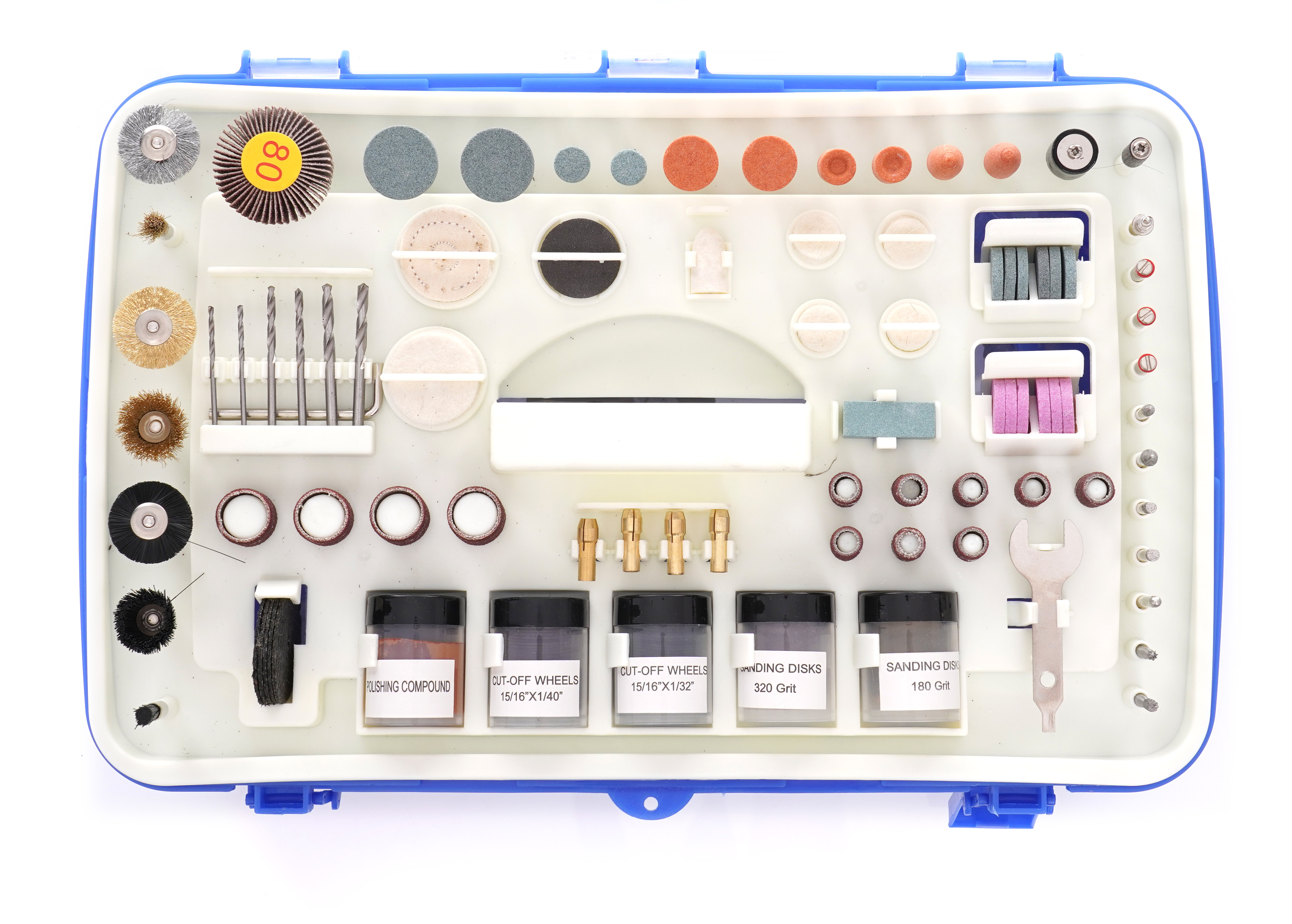 Souprava obsahuje až 218 dílů, díky kterým si vyberete potřebný nástavec pro prováděnou práci. Vše v praktickém balení.