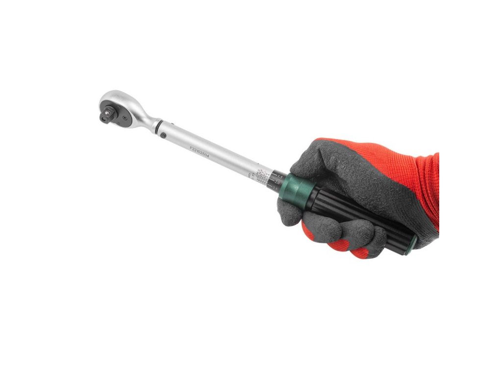- Komfort práce – protiskluzová rukojeť zabraňuje vyklouznutí klíče z rukou. Nástroj umožňuje snadné nastavení hodnoty točivého momentu a síly dotahování.