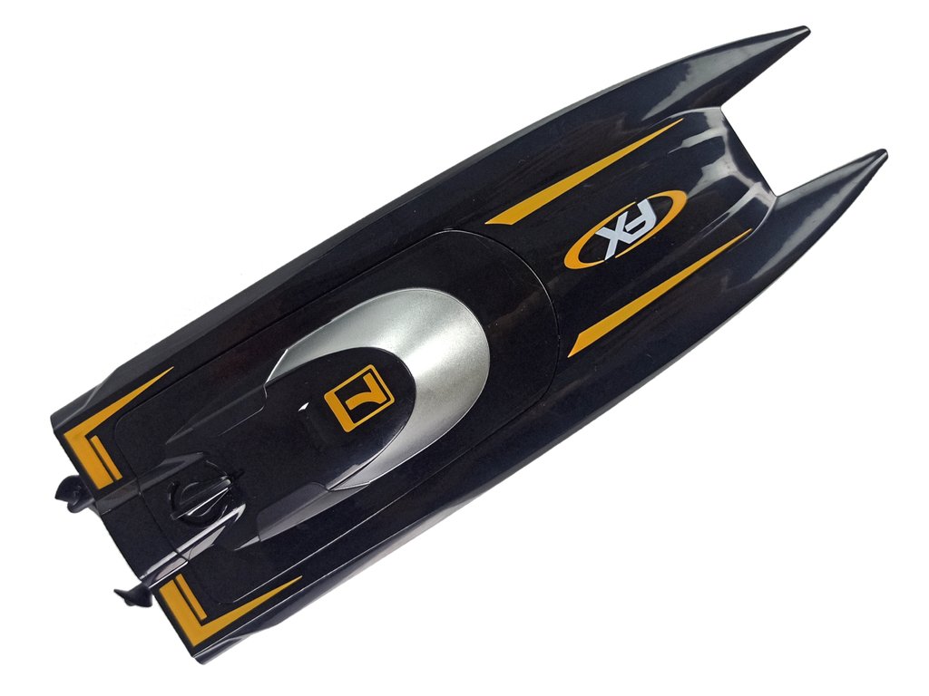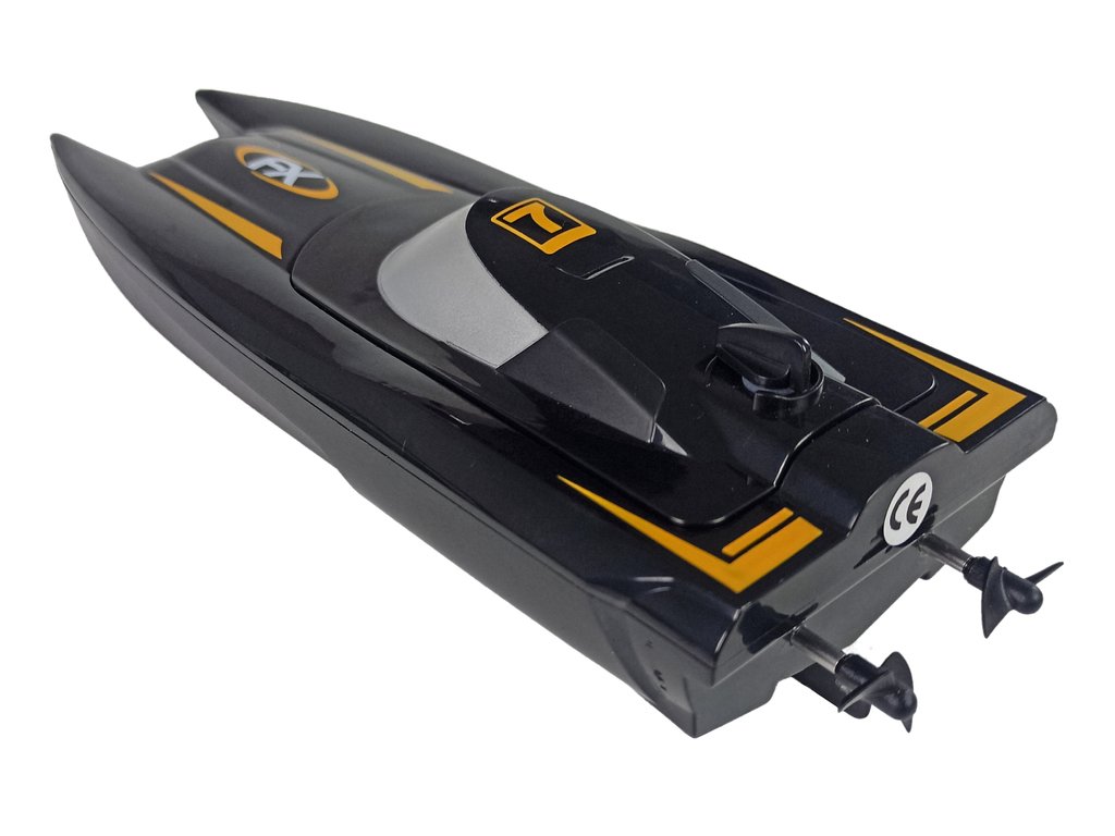 Motorový člun má speciální konstrukci, která zabraňuje vniknutí vody dovnitř. Díky dvěma motorum je obratný, rychlý a spolehlivý. Dálkové ovládání je pohodlné, skvěle padne do ruky. Vysílá na frekvenci 2,4 GHz, která nezpůsobuje rušení při ovládání dvou vozidel.