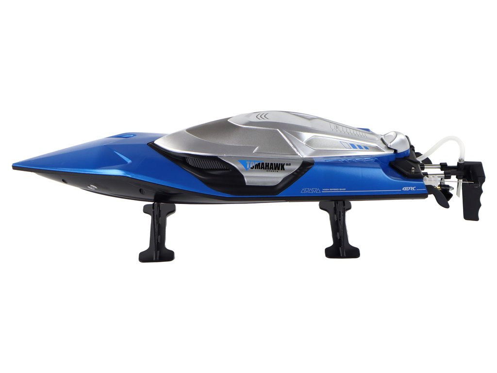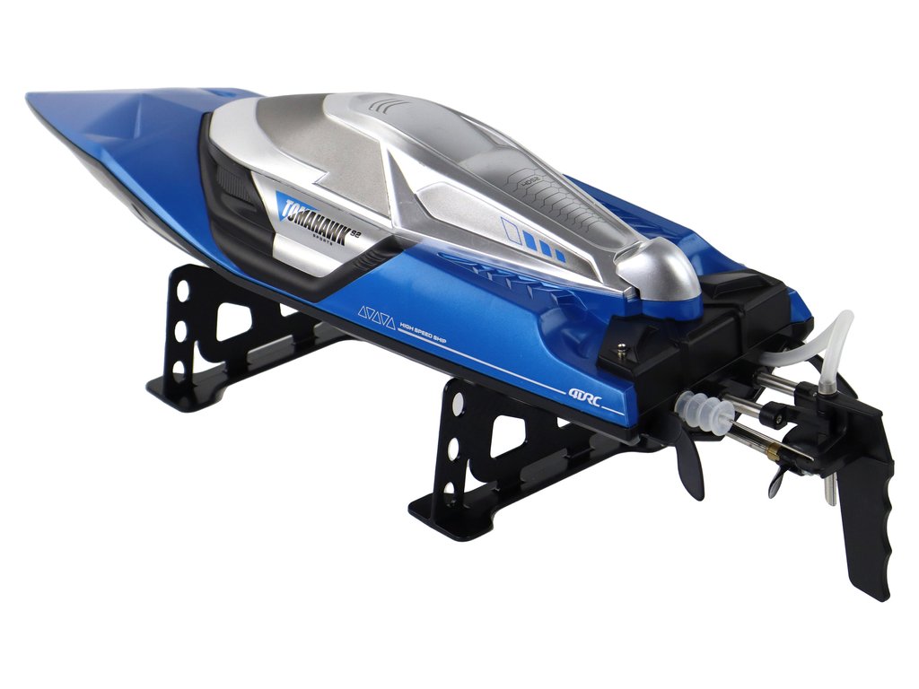 Motorový člun má speciální konstrukci, která zabraňuje vniknutí vody dovnitř. Díky dvěma motorům je obratný, rychlý a spolehlivý. Dálkové ovládání je pohodlné, skvěle padne do ruky. Vysílá na frekvenci 2,4 GHz, která nezpůsobuje rušení při ovládání dvou vozidel.