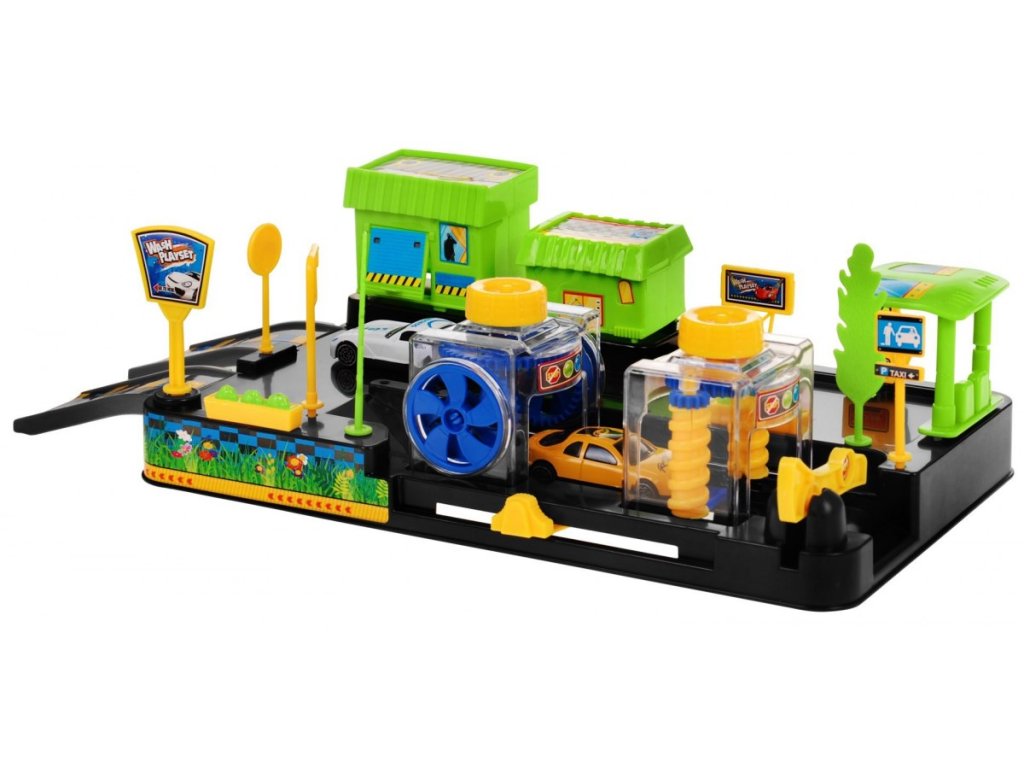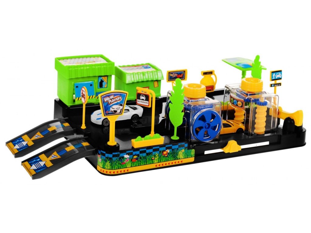 Tato skvělá autodráha s myčkou Vás jistě nebude nudit. V sadě se nachází také 2 autíčka. Na dráze jsou pohyblivé části.