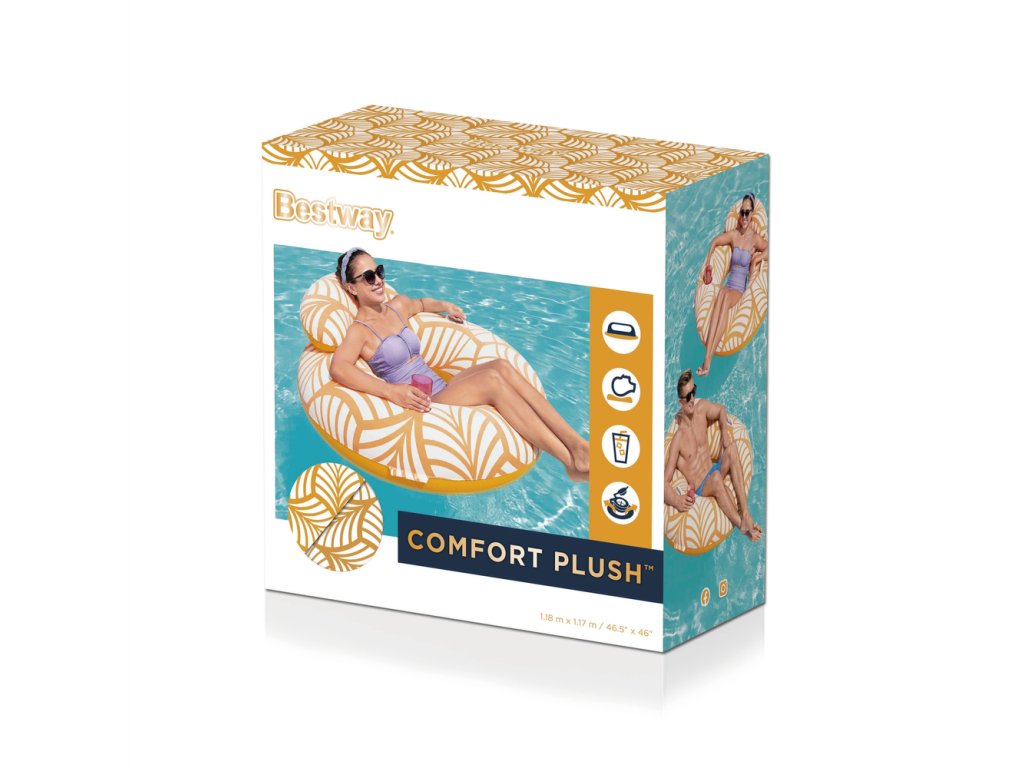 Kruh je určen pro děti od 14 let a všechny dospělé. Jeho průměr je 118 cm. Kolo je pohodlné a stabilní na vodě. Je vyroben z odolného PVC materiálu, díky tomu je odolné proti poškození a slunečnímu záření. Má zabudovanou pohodlnou opěrku hlavy, takže můžete relaxovat na vodě. Snadno se nafoukne a vyfoukne.