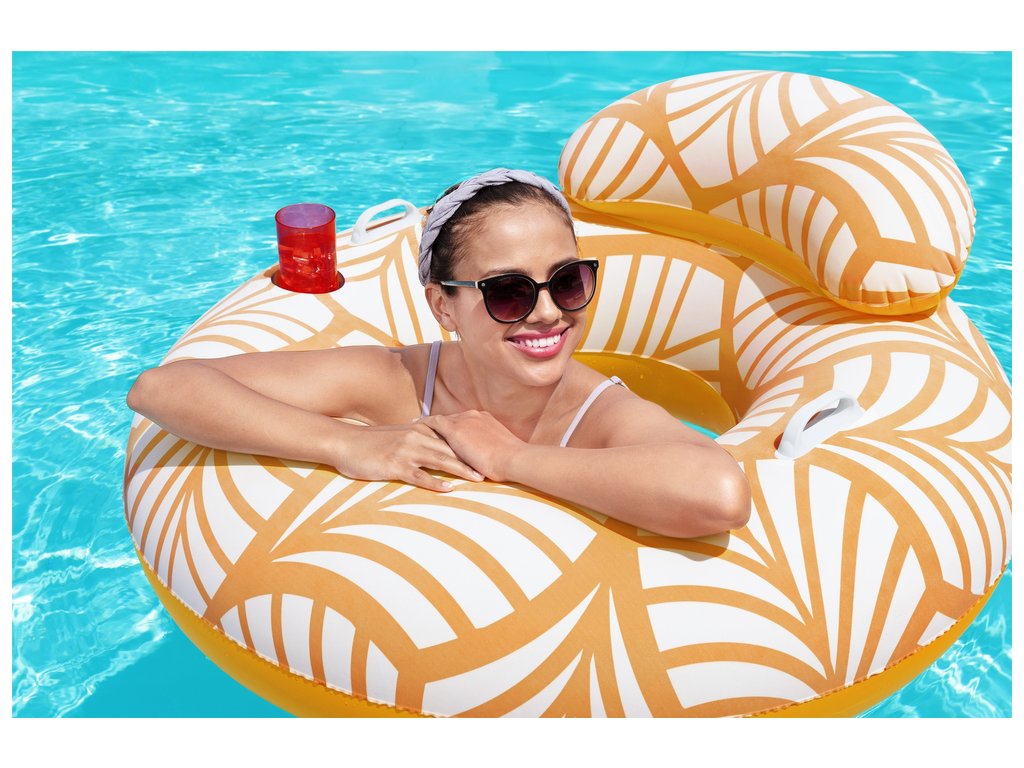 Nafukovací kruh s opěrkou má průměr 118 cm a nosnost 90 kg. Když se chystáte do vody, stojí za to vzít s sebou všechny potřebné bazénové doplňky, skvělým doplňkem vodní relaxace a zábavy bude také nafukovací plavecké kolo.