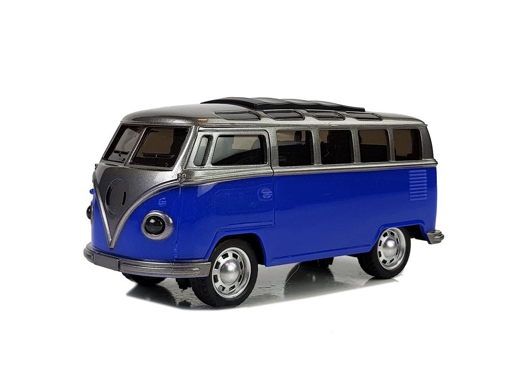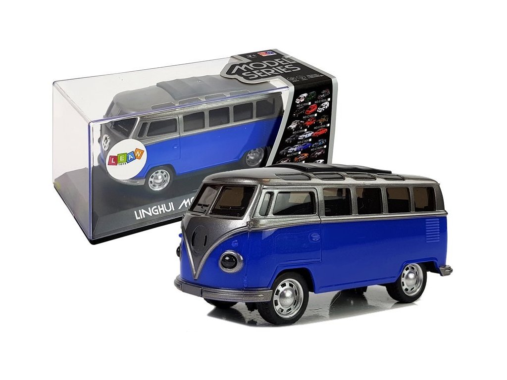 Natahovací autobus je vybaven gumovými koly, zvukovými i svítícími efekty. Jeho barva je modrá.