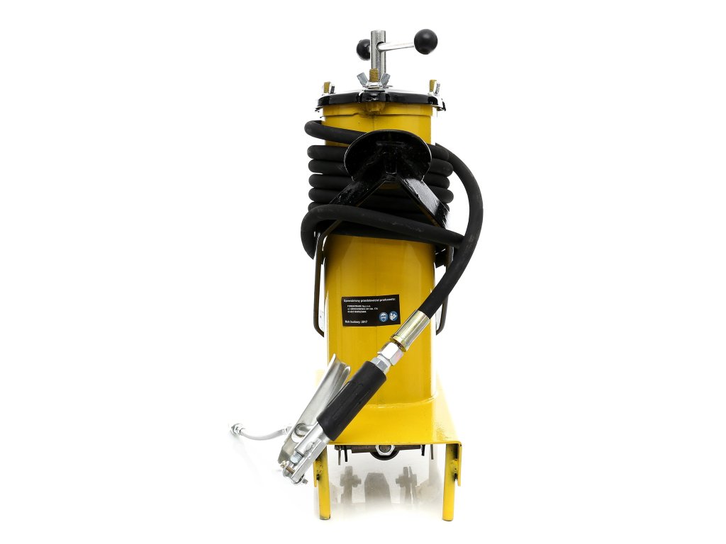 Profesionální maznička umožní bezproblémové mazání i v těžko přístupných místech. Nástroj má 3litrovou nádobu na olej.