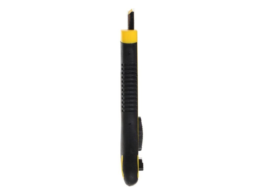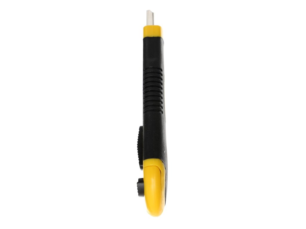 Ergonomická rukojeť pevně padne do ruky. Nůž je vybaven automatickou pojistkou a kovovou lištou.