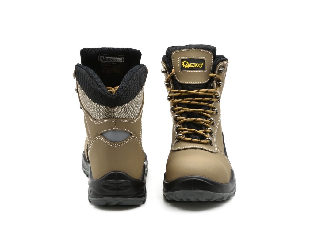 Vysoce kvalitní funkční kožená pracovní obuv PREMIUM třídy S3 od renomované značky GEKO poskytuje vynikající ochranu nohou před různými vnějšími vlivy. Tyto boty jsou navrženy tak, aby maximalizovaly komfort a bezpečnost při práci, a splňují přísné normy pro bezpečnostní obuv: CE EN ISO 20345:2011.
