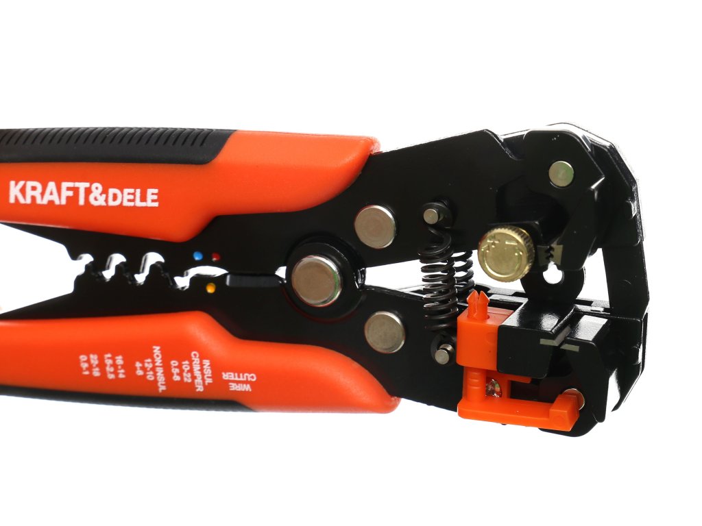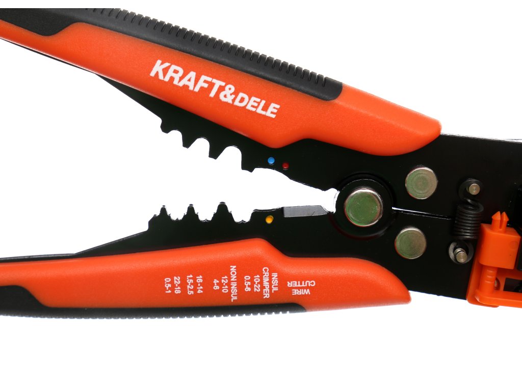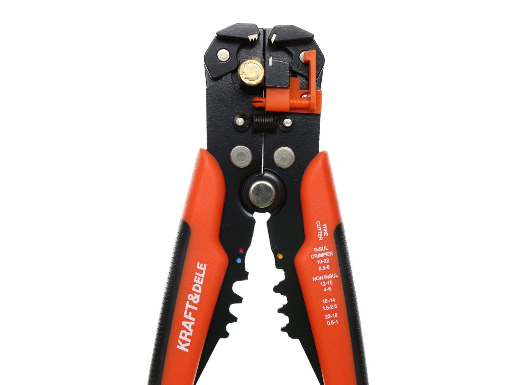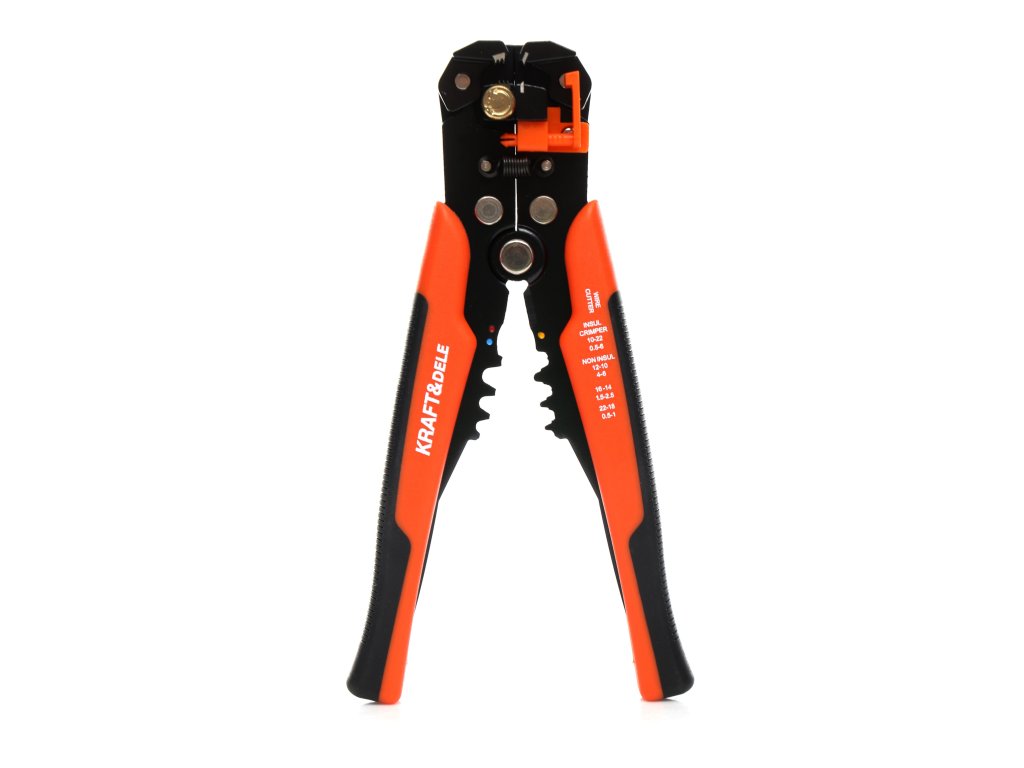 Multifunkční, zesílené zařízení s tvrzenými čepeli, protiskluzovou gumou a automatickým přizpůsobením průřezu vodiče. Navíc vybavené řezačkou, lisem na koncovky, nastavením délky odizolování a automatickým návratem do výchozí polohy. Délka nástroje je 205 mm.