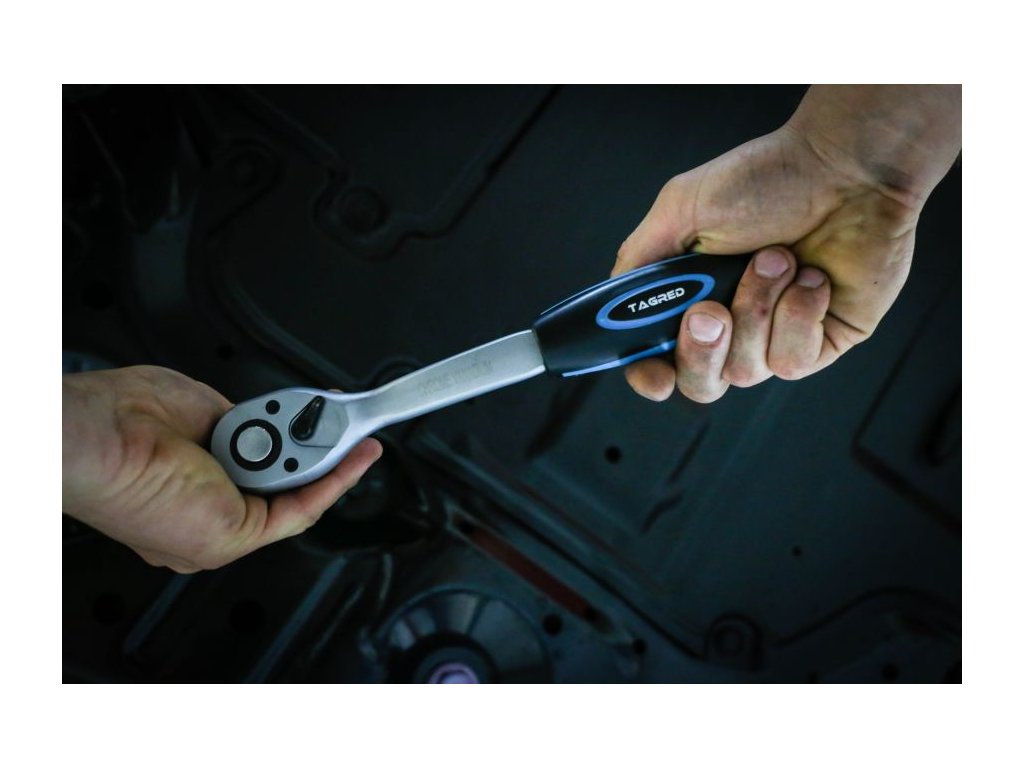 Silná ráčna 1/4" z prémiového segmentu, vyrobená z chrom-vanadové oceli CrV6140, zaručuje výjimečnou odolnost a dlouhou životnost.