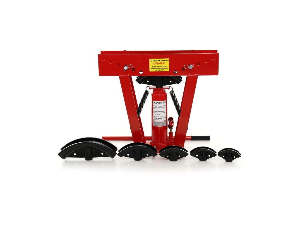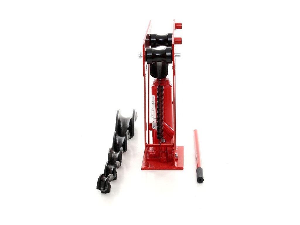 Ohýbačka s manuálním pohonem. Pumpování pomocí přiložené páky. Válec s maximálním tlakem 12T. Uvolnění (zpětný pohyb pístu) se provádí po odšroubování ventilu v dolní části válce.
