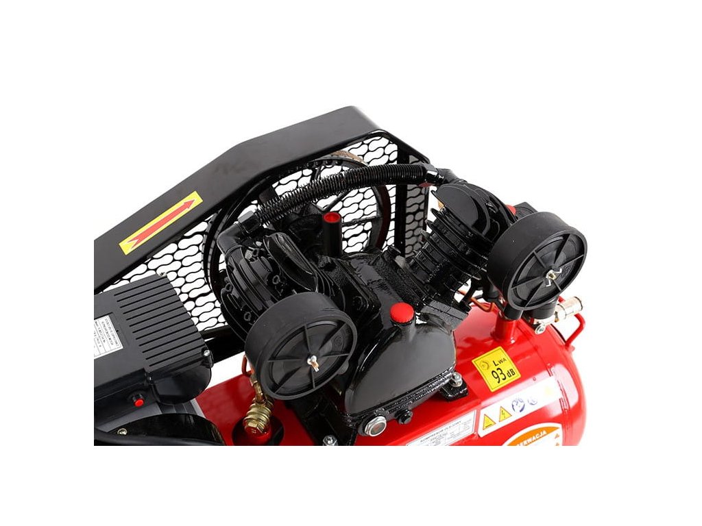 Kompresor je vybaven dvěma výkonnými písty, což zajišťuje zvýšenou efektivitu a delší životnost. I přes svůj vysoký výkon je zařízení díky solidním kolečkům a ergonomické rukojeti plně mobilní.