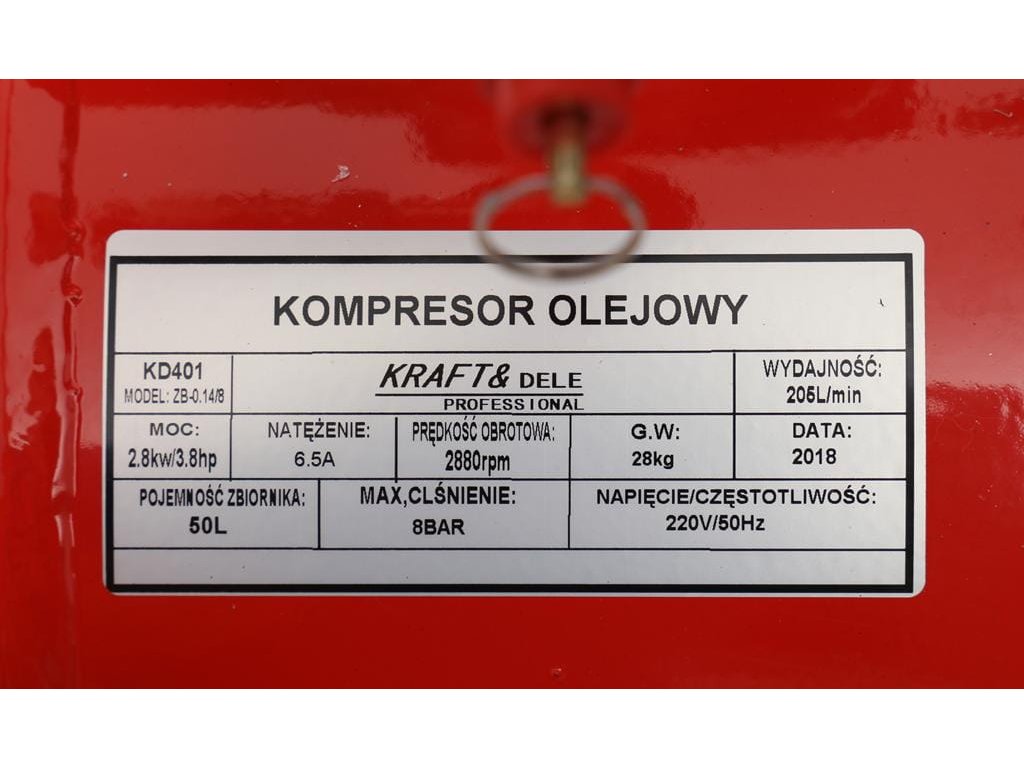 Obsah balení • Olejem mazaný kompresor Kraft&Dele KD401 • 2 pojezdová kola • Filtr • Návod v polském jazyce |