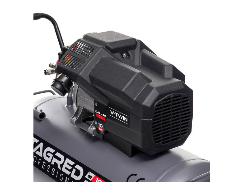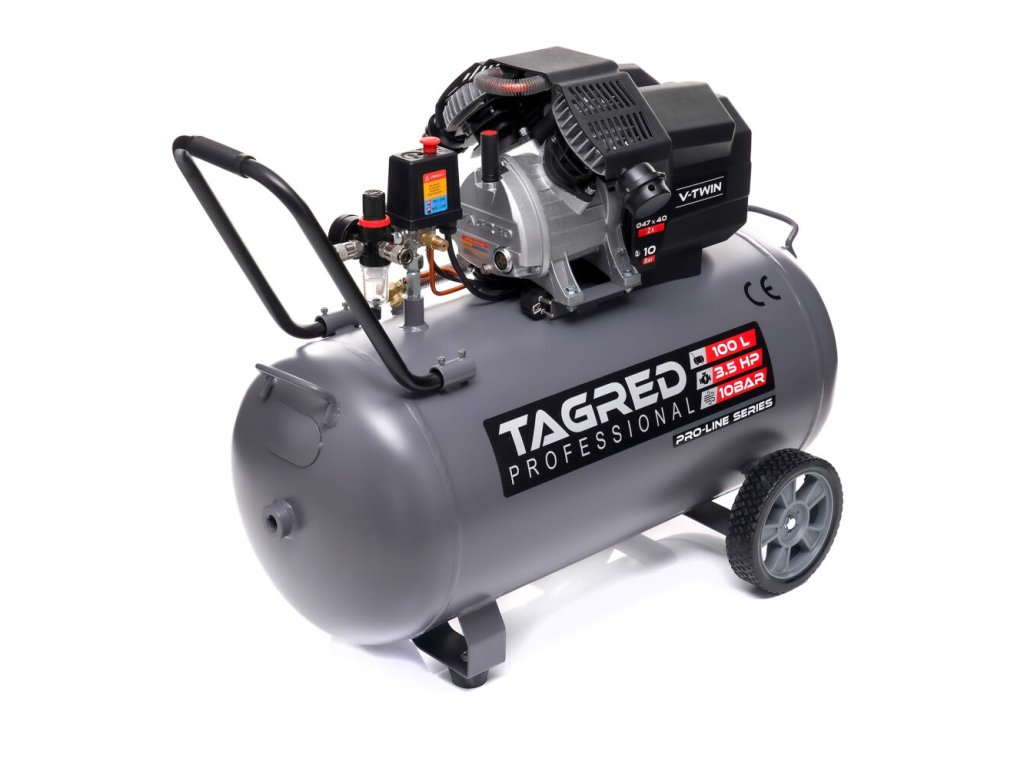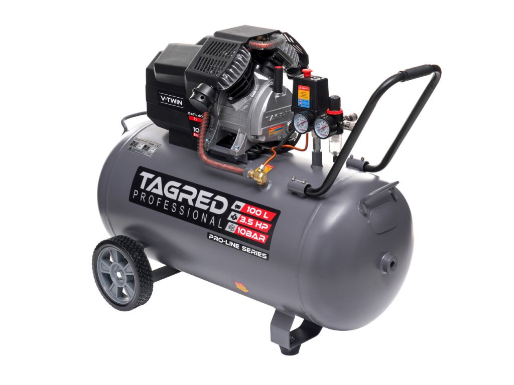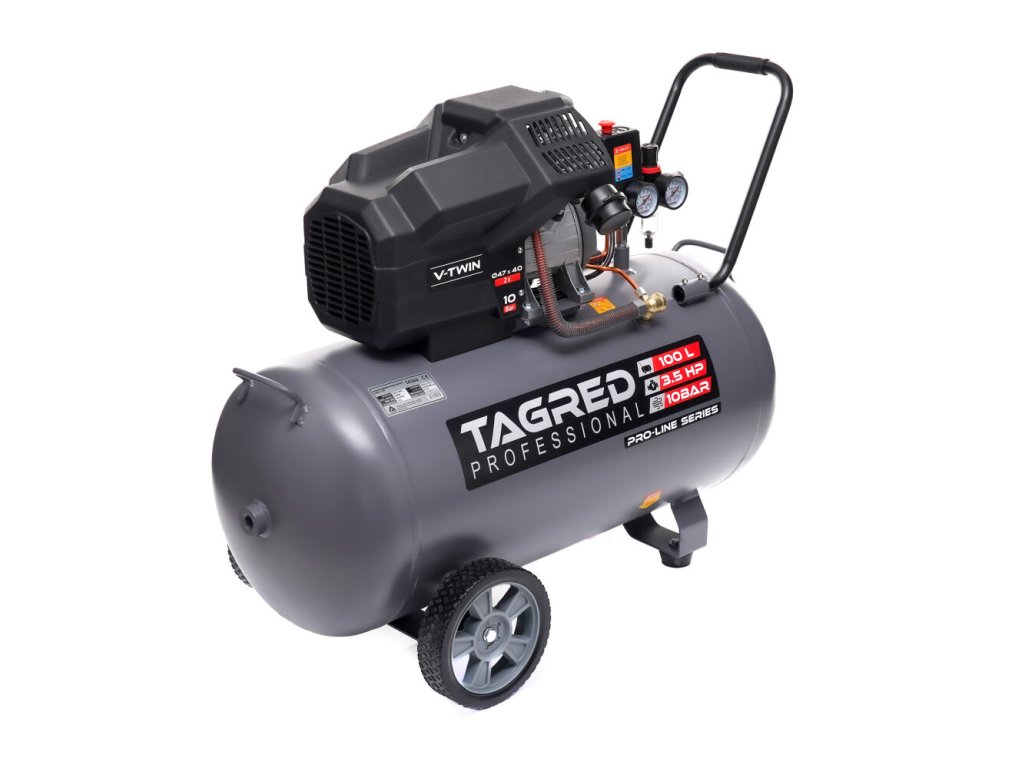 Výkonný olejový kompresor TAGRED Pro-Line je robustní a spolehlivé zařízení určené pro intenzivní práci v dílně, garáži i při domácím použití. Díky dvoupístové konstrukci, vysokému výkonu a maximálnímu tlaku 10 bar poskytuje stabilní přísun stlačeného vzduchu pro široké spektrum pneumatického nářadí. Kvalitní zpracování, výkonný motor a účinný systém chlazení zajišťují dlouhou životnost i při dlouhodobém zatížení.