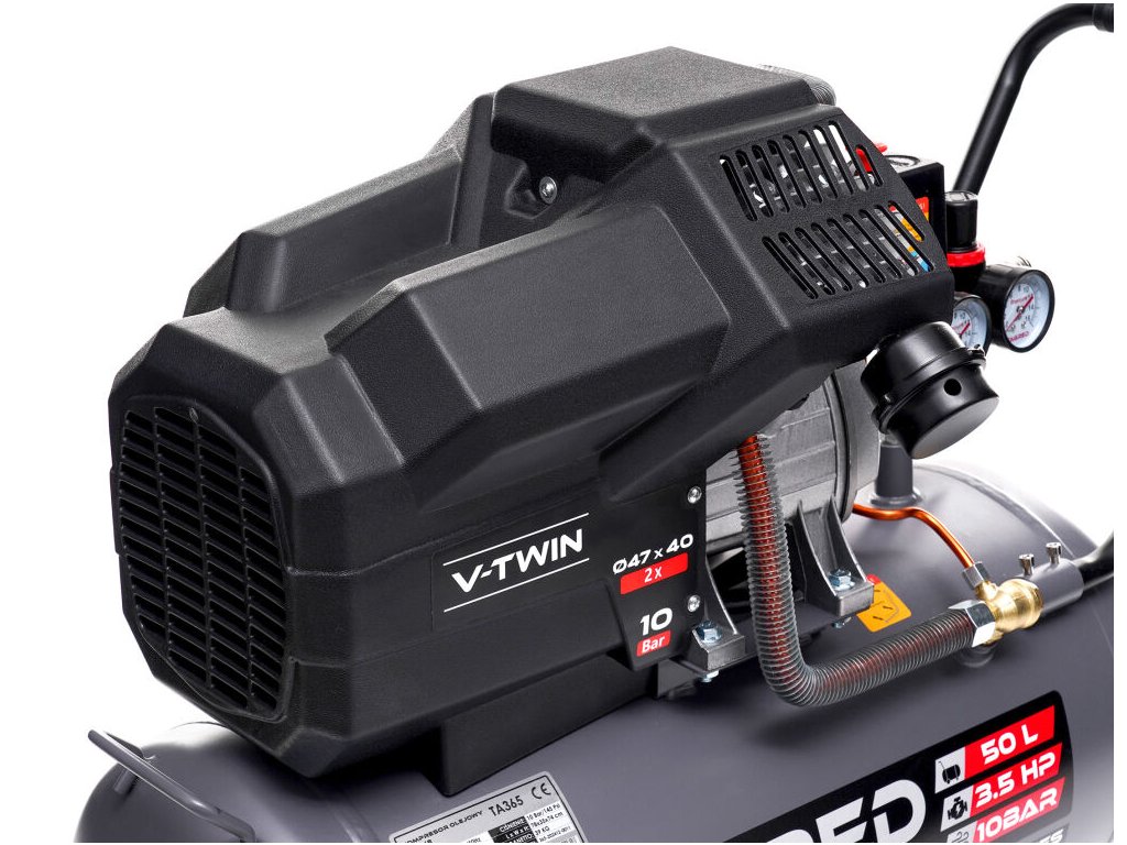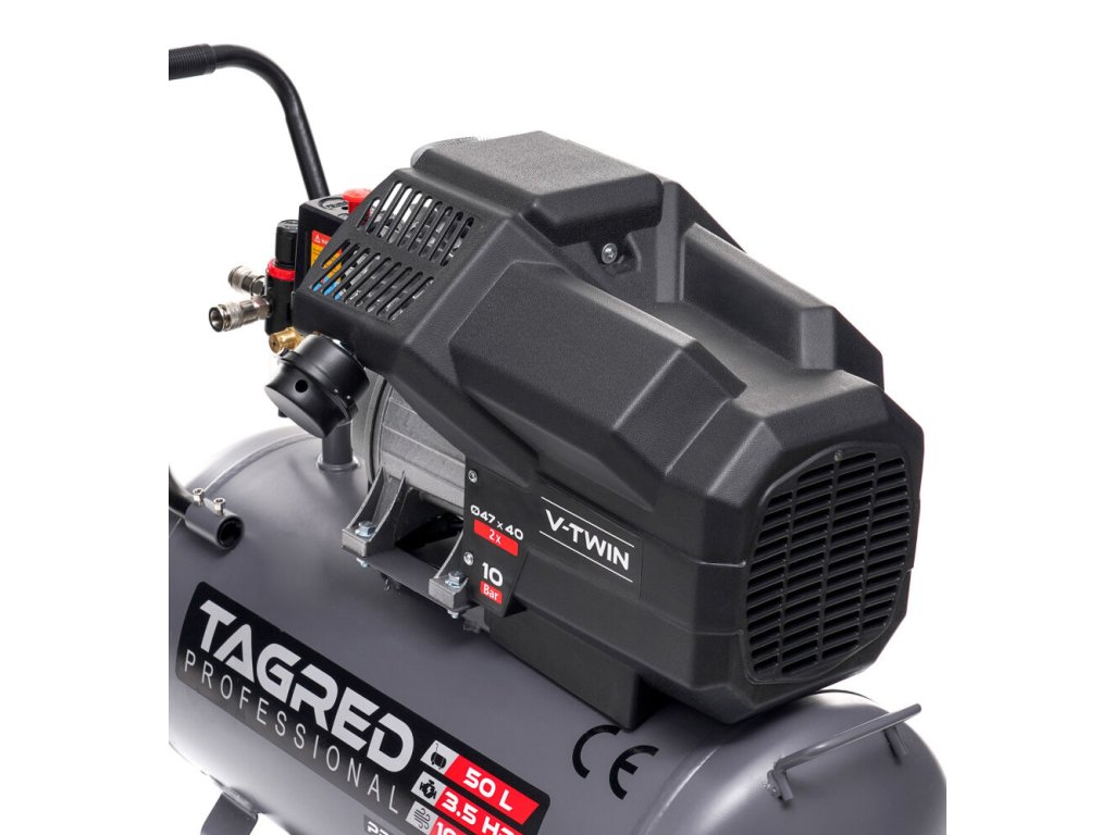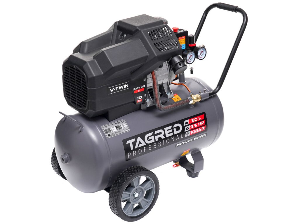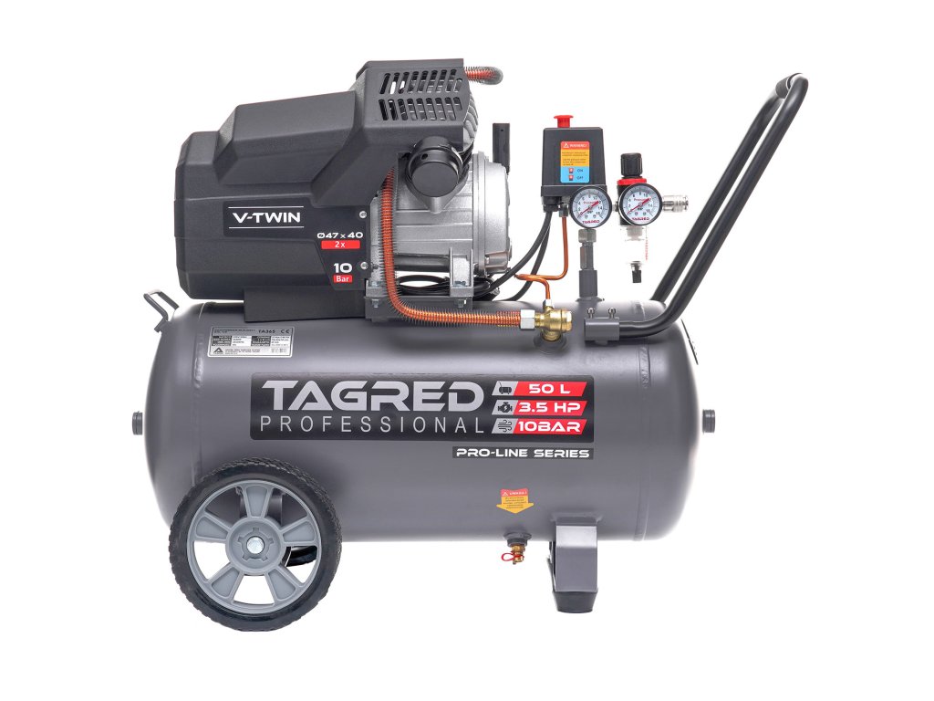 Výkonný olejový kompresor TAGRED Pro-Line je spolehlivé zařízení určené pro náročnou práci v dílně, garáži i při domácím použití. Díky dvoupístové konstrukci, vysokému výkonu a maximálnímu tlaku 10 bar poskytuje stabilní přísun stlačeného vzduchu pro široké spektrum pneumatického nářadí. Robustní konstrukce s litinovými válci a účinným chlazením zajišťuje dlouhou životnost i při intenzivním používání.