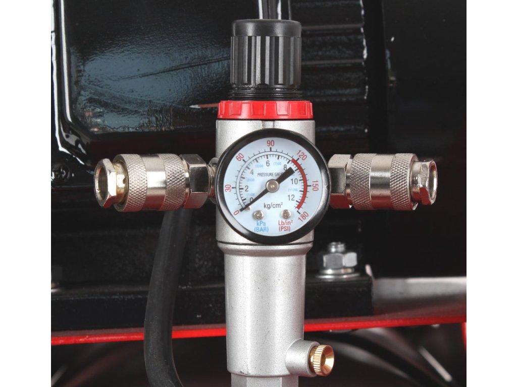 - Ergonomický design s regulátorem tlaku a velkým manometrem pro snadné odečítání parametrů.