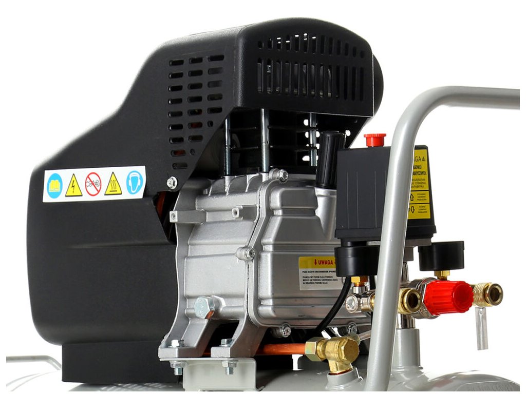 - Obsah balení: kompresor, 2× rychlospojka, transportní kola, stabilizační gumová podložka, madlo