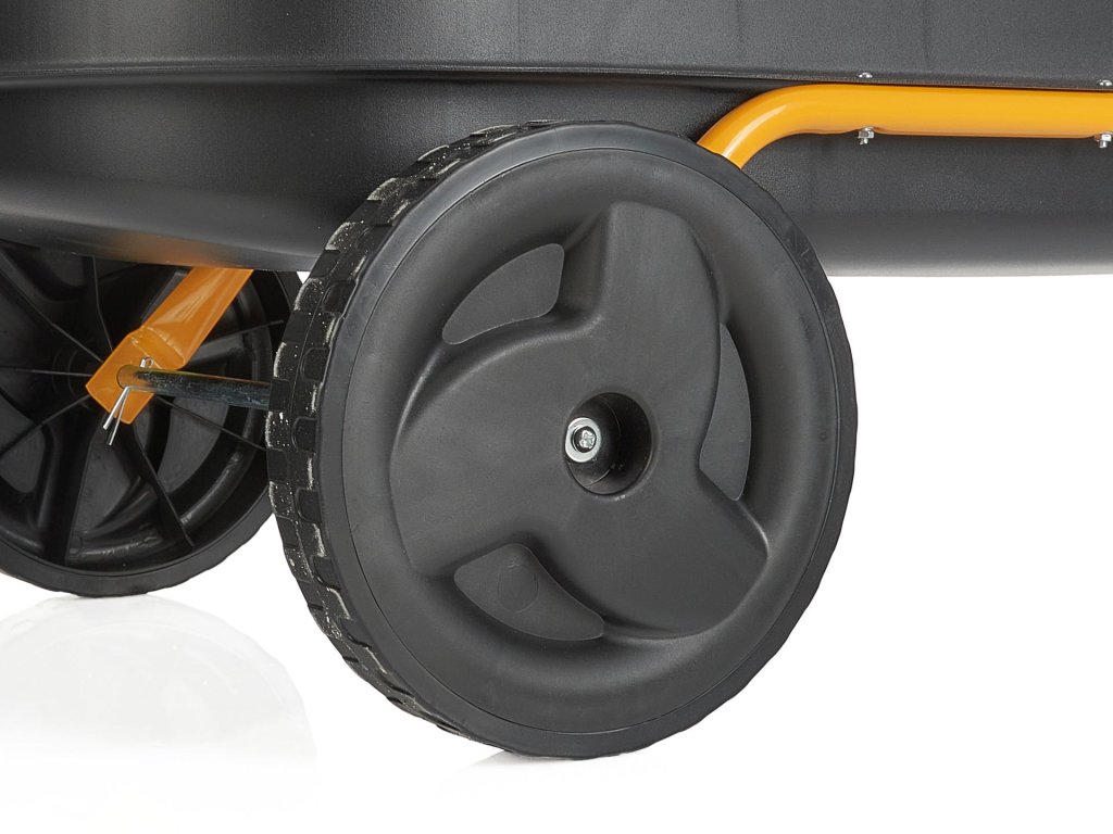 - Pevná a jednoduchá konstrukce vybavená dvěma přepravními kolečky pro snadný transport