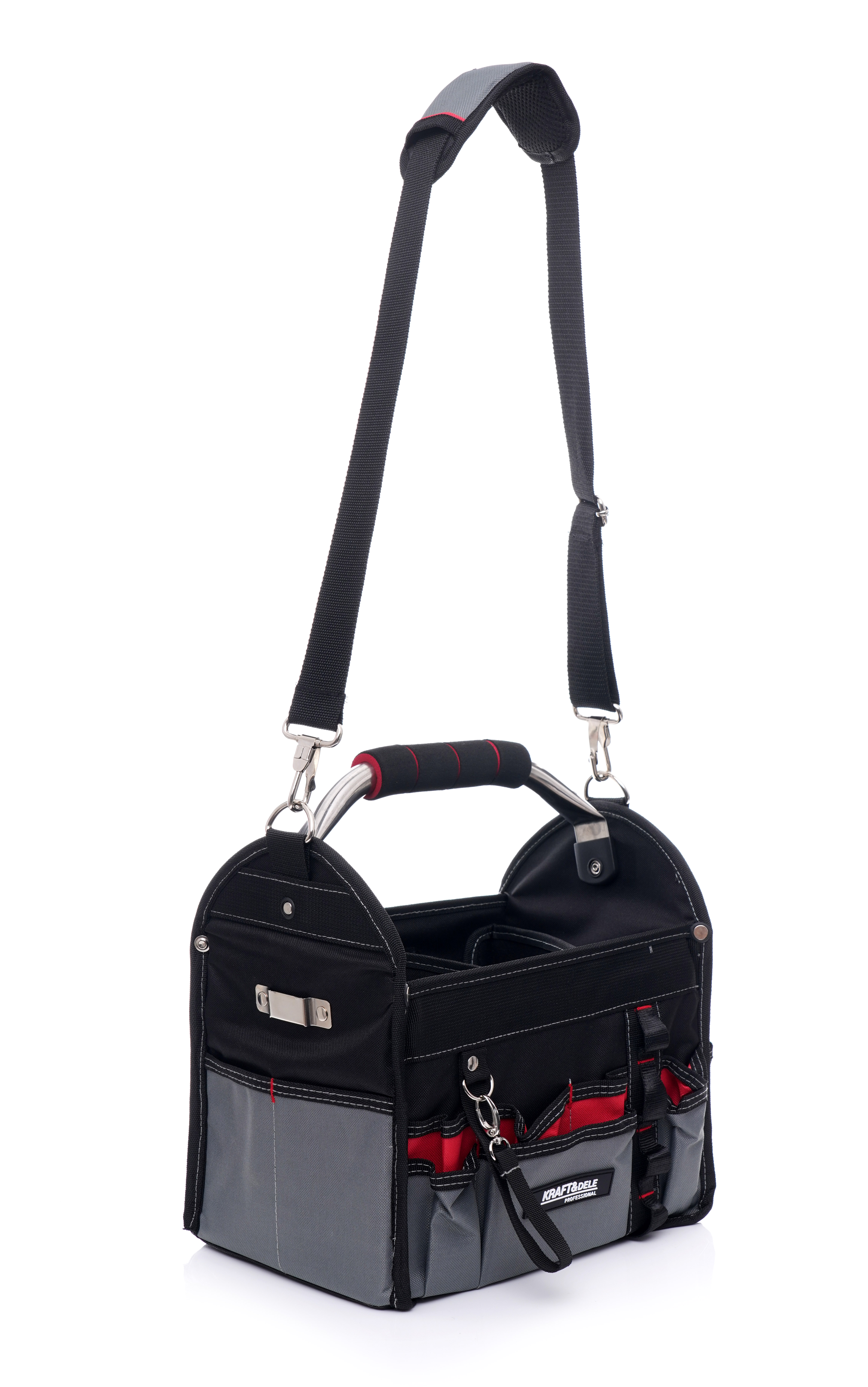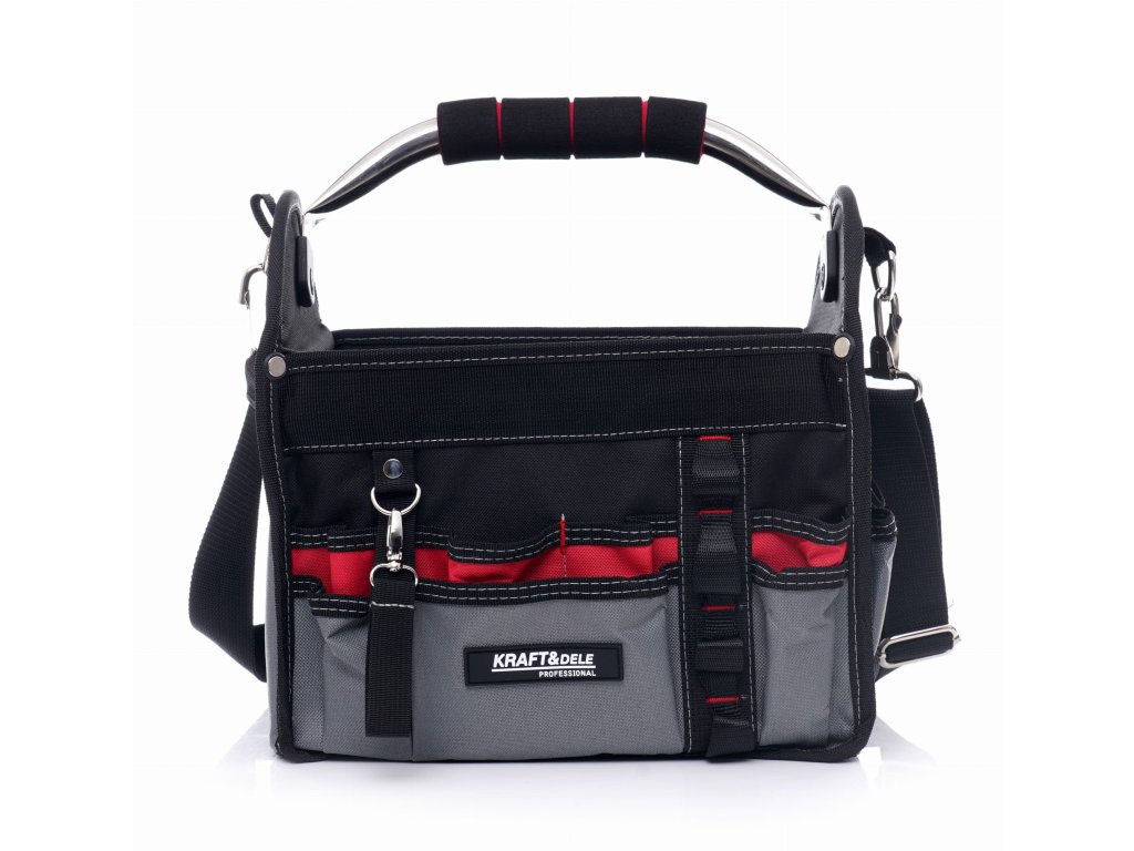 Otevřená nářaďová taška pro montéry značky Kraft&Dele je ideálním organizérem nářadí pro všechny montéry (elektrikáře, instalatéry, obkladače atd.). Pevné dno potažené kompozitním materiálem zajišťuje dlouhou životnost a množství kapes přináší pořádek a rychlý přístup k potřebným nástrojům.
