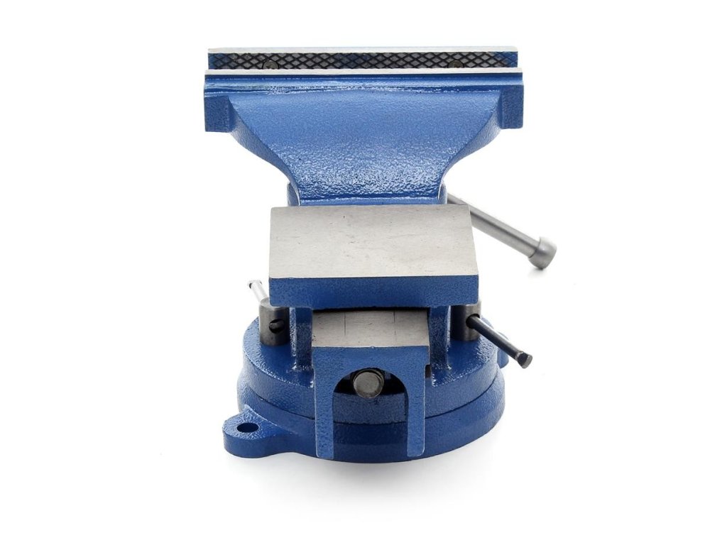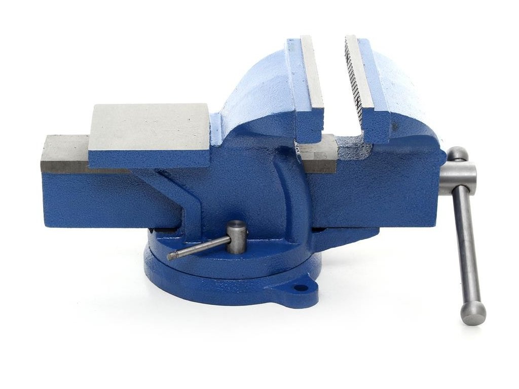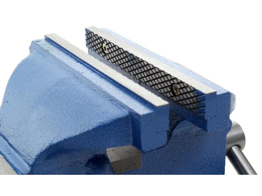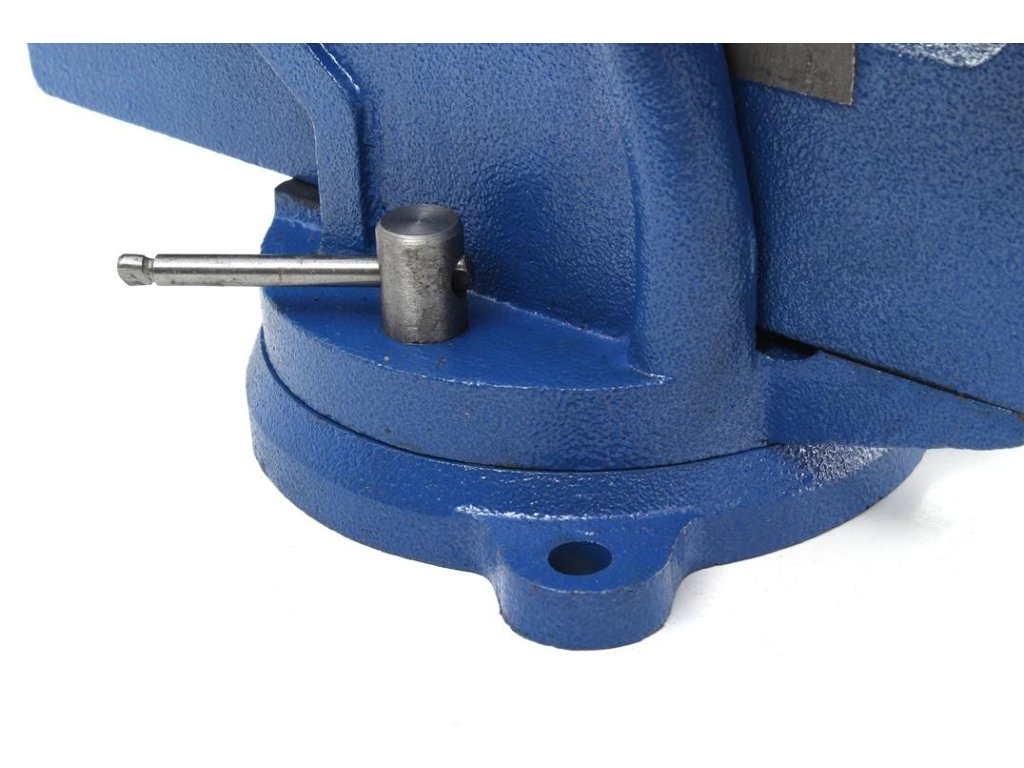 - Svěrák má otočný podstavec, který umožňuje otáčení o 360 stupňů, což výrazně usnadňuje práci a přístup k materiálům.