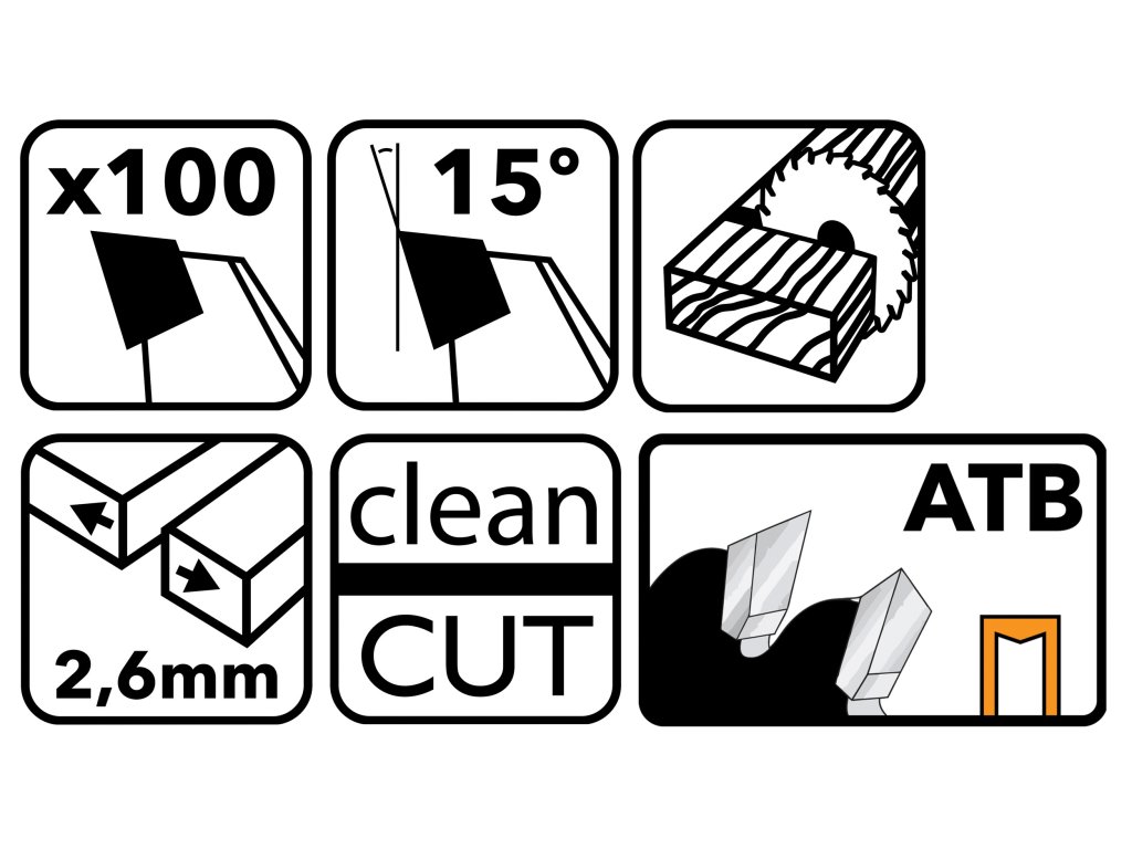 Odolný kotouč z tvrdé oceli obsahuje 100 řezacích zubů, což zajišťuje účinné a přesné řezání.