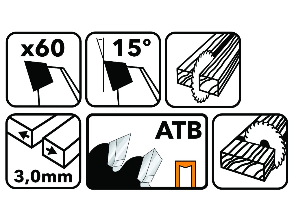 Kotouč POWERMAT je vyroben z kalené oceli a disponuje 60 řeznými zuby, což zajišťuje výjimečný výkon při řezání.