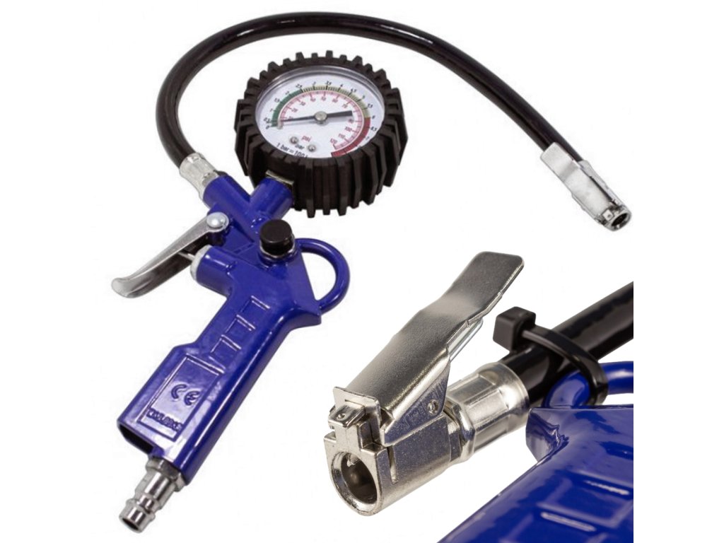 Pistole s manometrem na huštění kol je ideální jak pro huštění kol, tak pro kontrolu tlaku v pneumatikách.