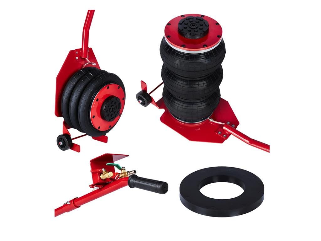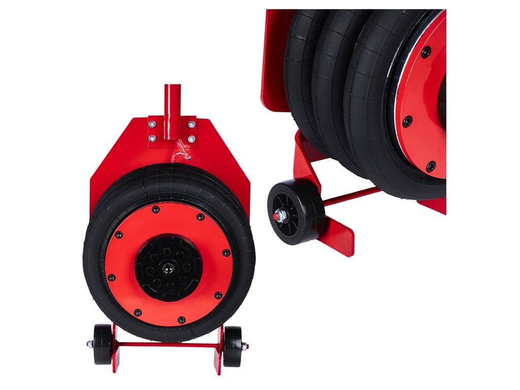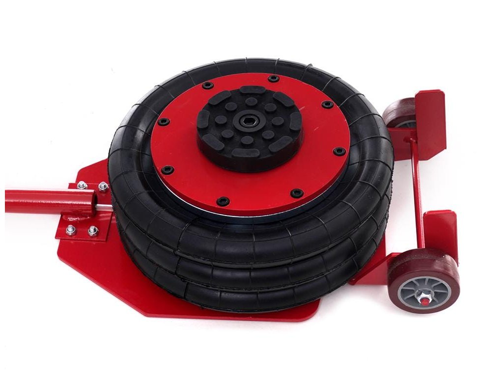 Praktický zvedák na auto, vybavený pojezdovými koly, díky kterým se jednoduše přemisťuje.