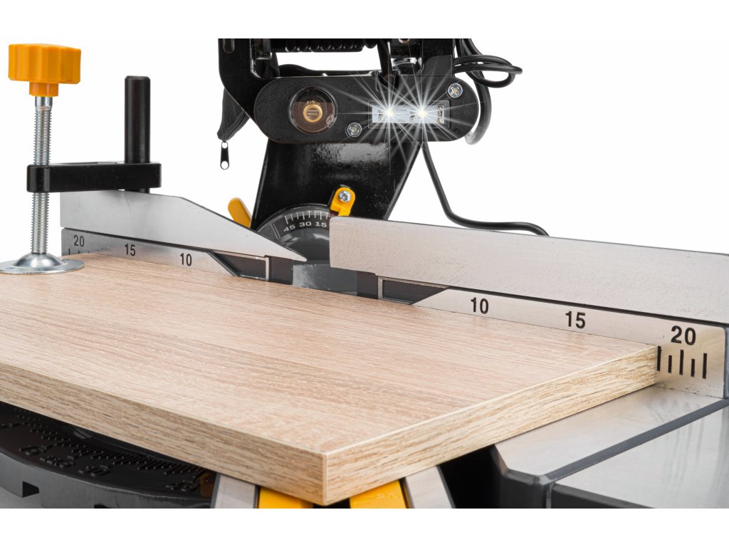 LED svítidlo se dvěma diodami osvětluje pracovní plochu a zajišťuje optimální podmínky pro řezání.