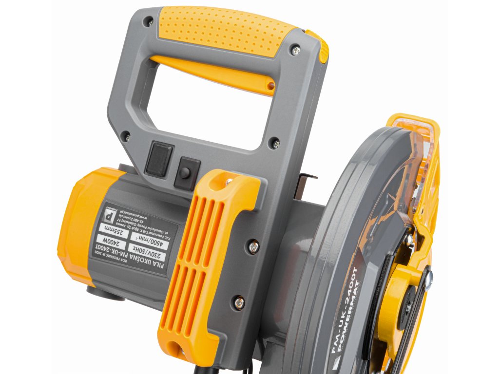 Úkosová pila POWERMAT PM-UK-2400M je robustní nástroj s výkonem až 2400 W, který je ideální pro každodenní kutilské práce. Skvěle se hodí pro šikmé a úhlové řezy. Tento model je navržen s dvojitou skluznou lištou, která může být bezpečně zablokována speciálním zámkem, což zaručuje maximální přesnost a stabilitu během použití.