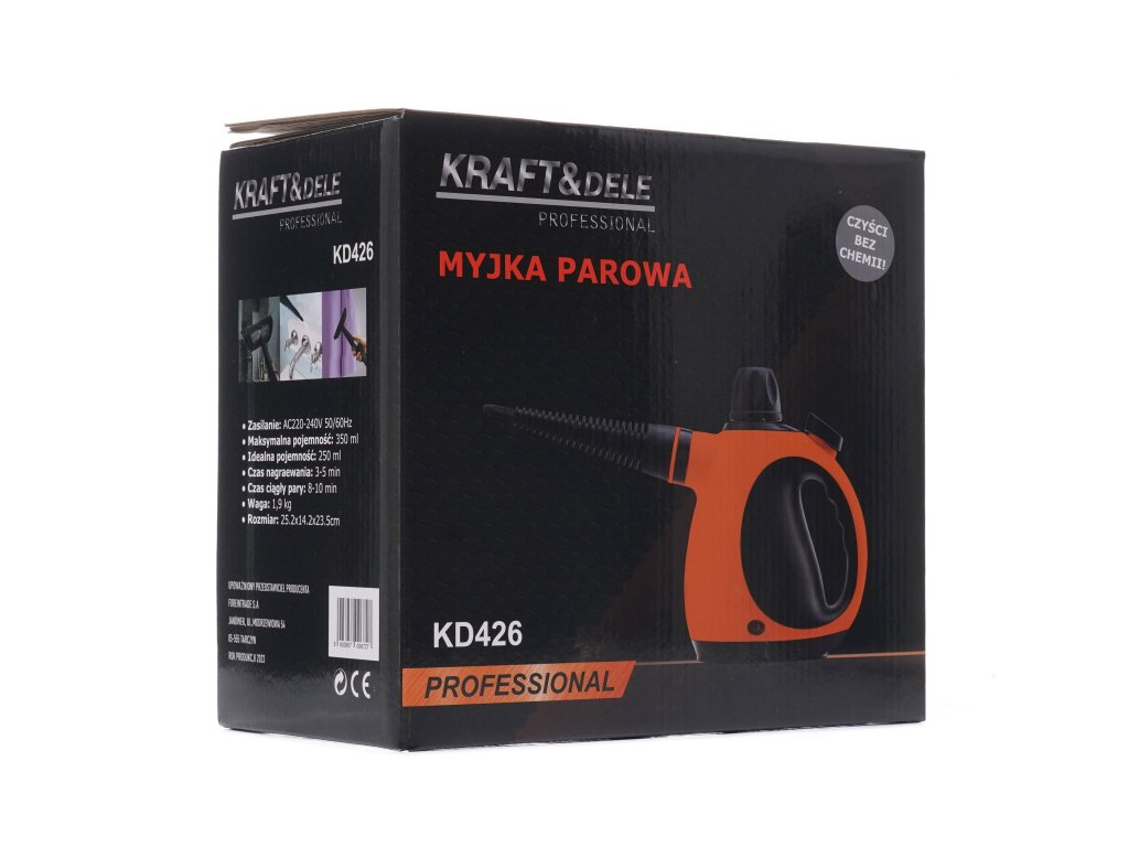 Multifunkční parní čistič značky Kraft&Dele model KD426 je určen pro všechny povrchy. Teplota páry dosahuje až 135 °C, což umožňuje odstranění nečistot a skvrn na podlahách, dveřích, oknech, oblečení, dlažbě, automobilových discích a mnoha dalších.
