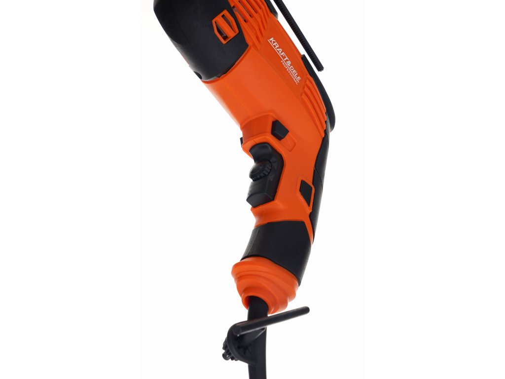 Elektrická příklepová vrtačka Kraft&Dele KD3352 s výkonem 1600W je určena k příklepovému vrtání do zdiva, betonu a kamene, stejně jako k vrtání do kovu, keramiky, dřeva a plastu. Hlavní rukojeť je vyrobena ze speciálního protiskluzového materiálu pro lepší úchop. Jedná se o verzi vybavenou navíc boční rukojetí. Hlavička je vyrobena z kovu.