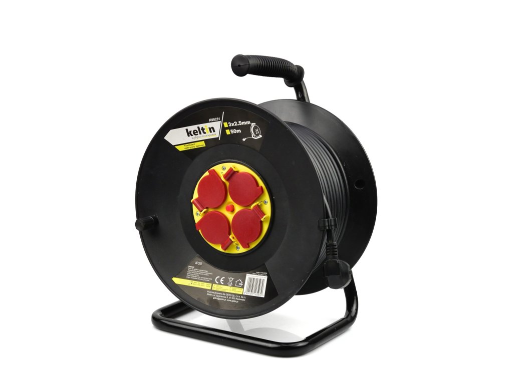 Charakteristika produktu: Buben je vyroben z materiálu odolného proti prasknutí a nárazům. Ocelový rám je vybaven držákem na kabel a brzdou. Obsahuje také 4 zásuvky 230 V s krytkami.