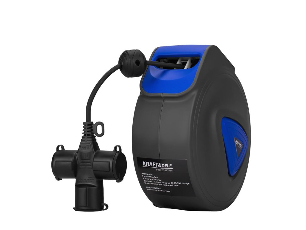 Automatický naviják s prodlužovacím kabelem, model KD4045 značky Kraft&Dele, je ideální vybavení pro každý dům, dílnu i zahradu. Pevné plastové pouzdro chrání kabel a má ochranu proti přehřátí, zásuvka s dětskou pojistkou zajišťuje bezpečnost. Možnost montáže na zeď. Slouží k propojení vodičů, kabelů, hadic apod.
