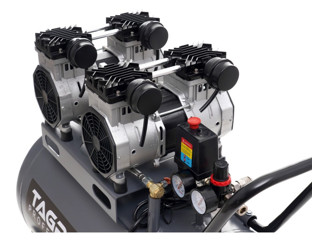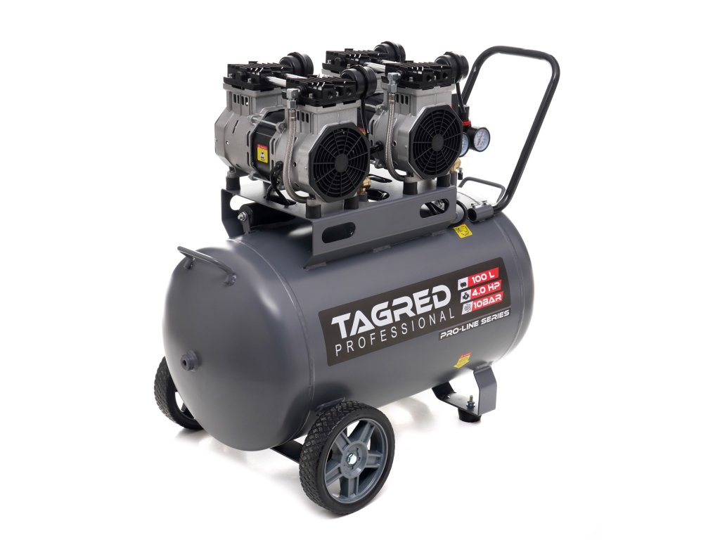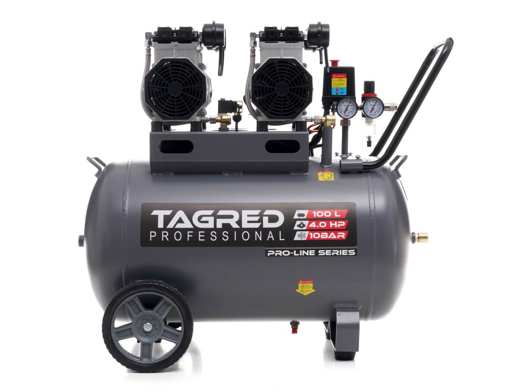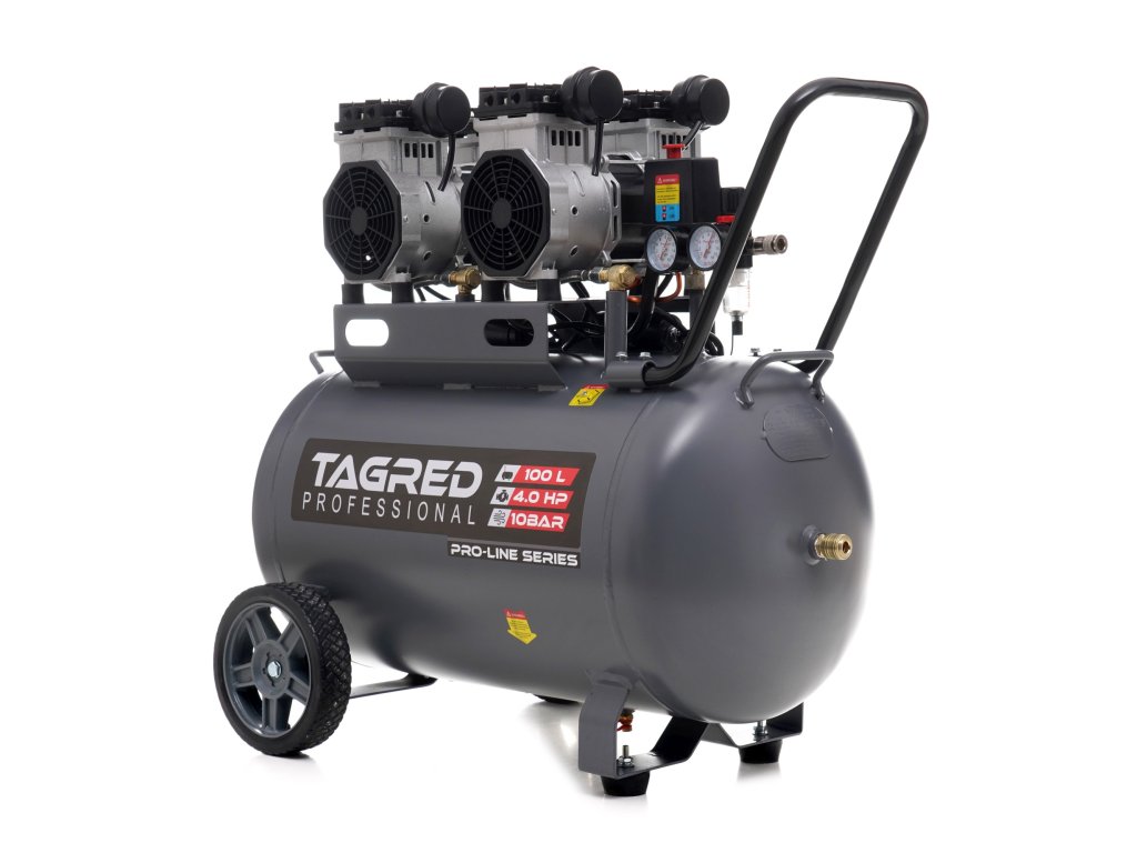 Bezolejový kompresor TAGRED PRO-LINE je vysoce efektivní zařízení, které vyniká svou pracovním komfortem, bezpečností a snadnou obsluhou. Tento model je ideální tam, kde je nezbytné, aby stlačený vzduch nebyl kontaminován olejem, což zahrnuje zubní, potravinářské a farmaceutické provozy, jakož i domácí použití. Kompresory TAGRED se vyznačují tišším chodem, menšími rozměry a hmotností, což zaručuje vyšší mobilitu ve srovnání s tradičními olejovými kompresory.