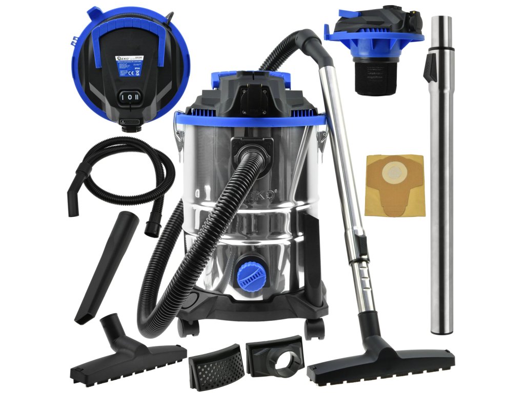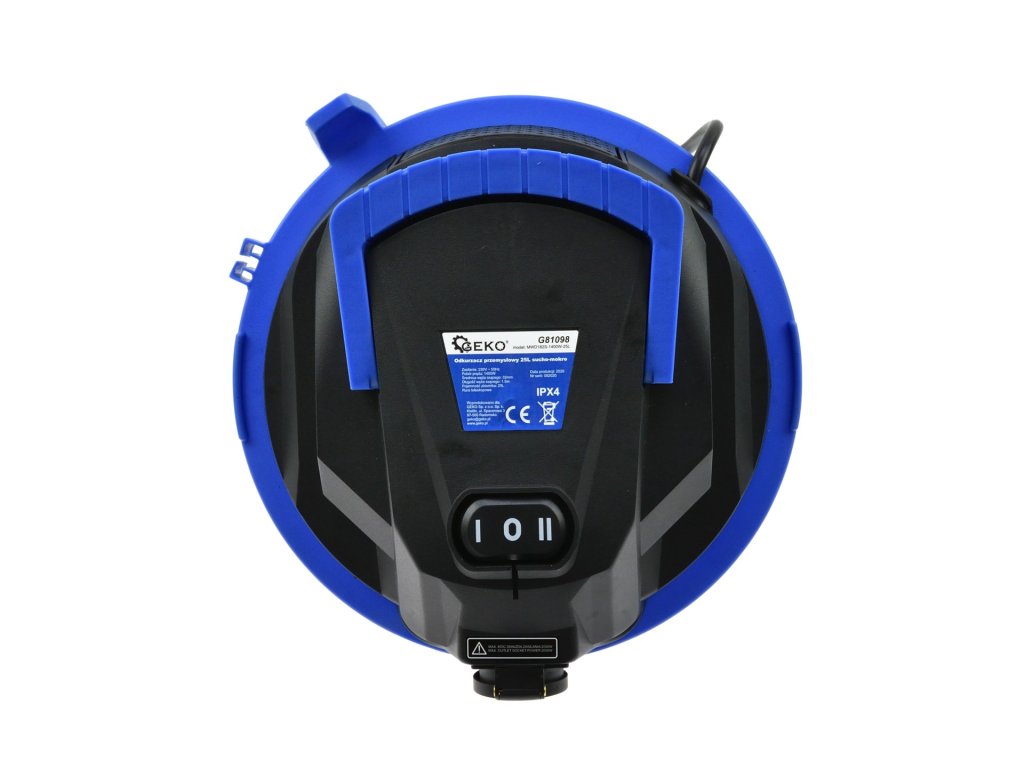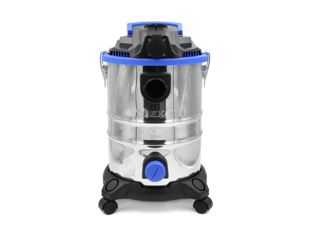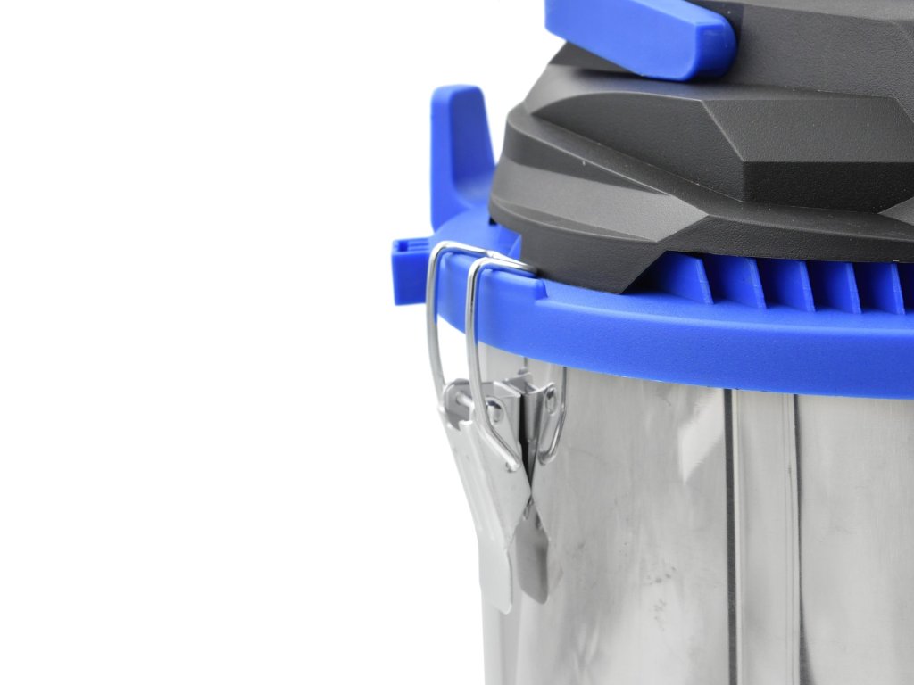 Zařízení je vybaveno praktickou zásuvkou, která umožňuje připojení elektrického nářadí s maximálním výkonem až 2000W. Třípolohový vypínač umožňuje snadné přepínání mezi dvěma pracovními režimy, a nádoba s objemem 25 litrů je vyrobena z pevné nerezové oceli. Díky funkci foukání můžete snadno vyfoukat nečistoty z těžko dosažitelných míst.