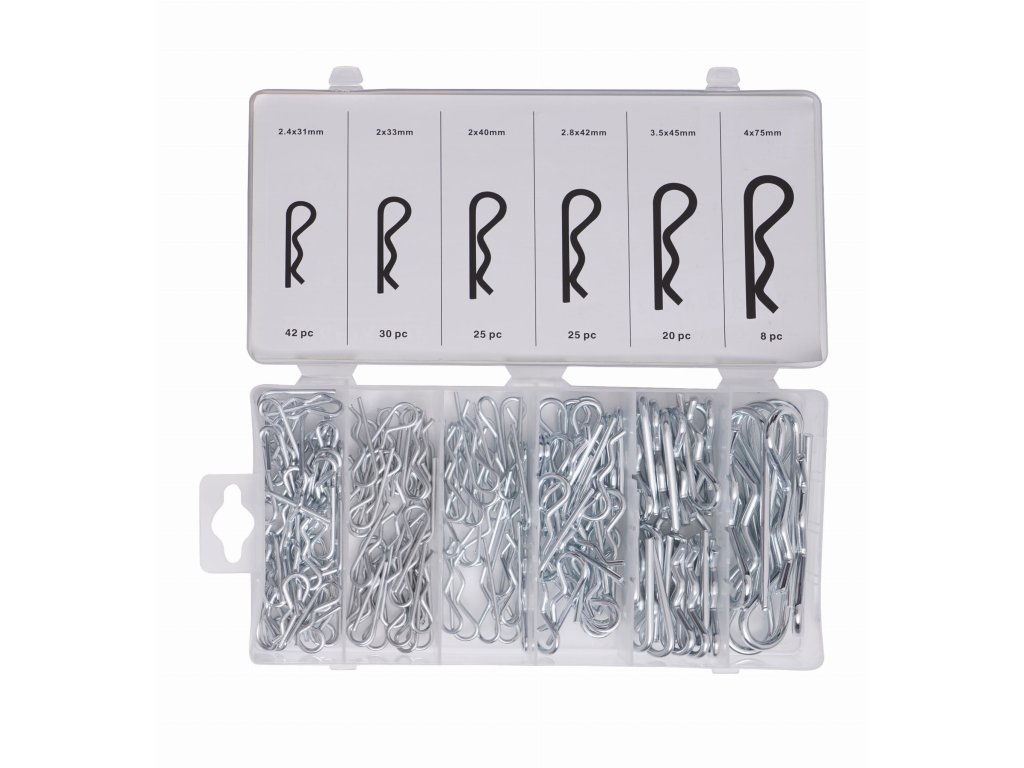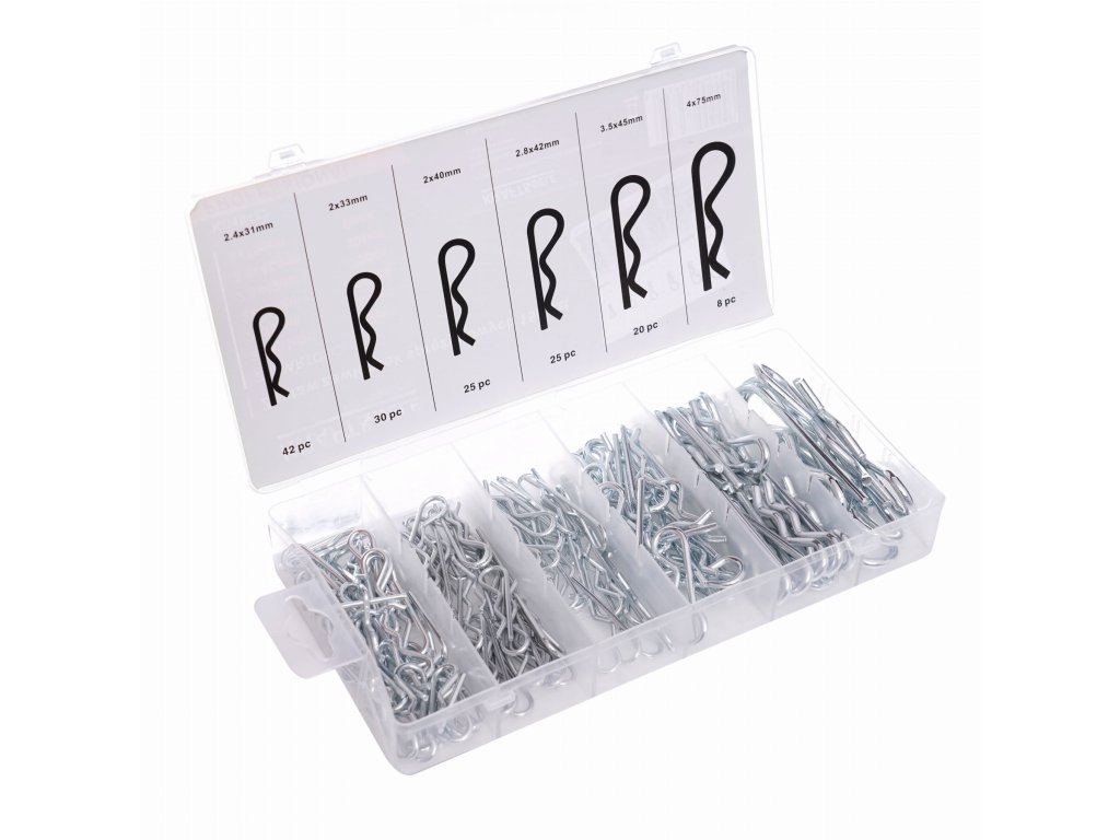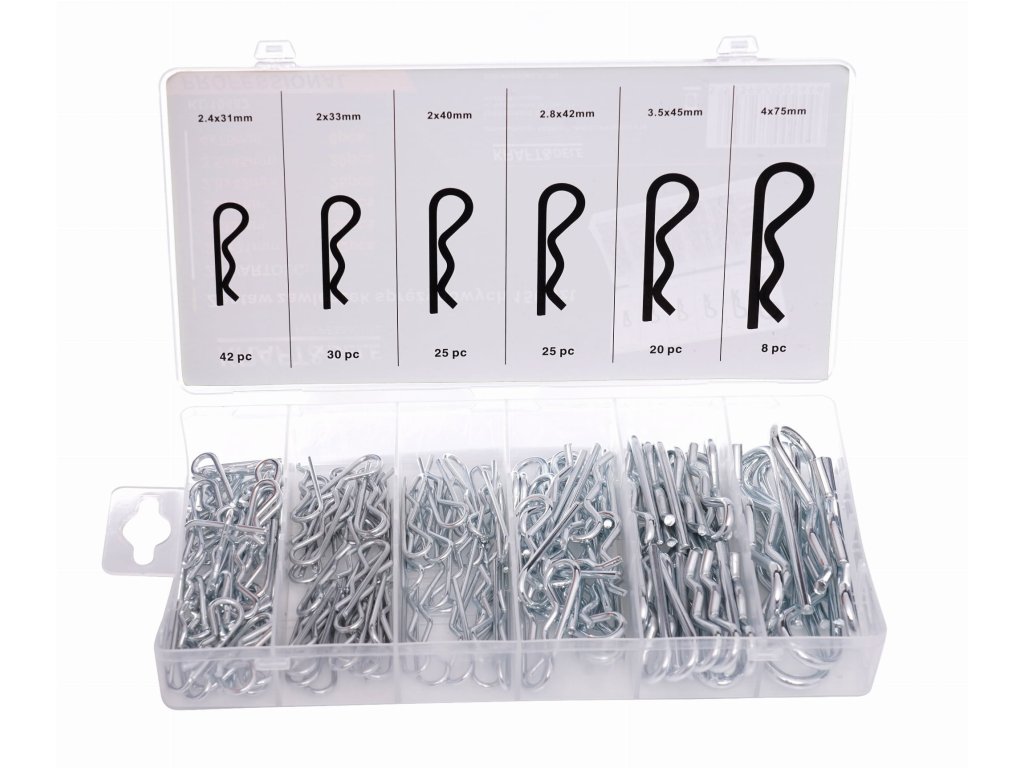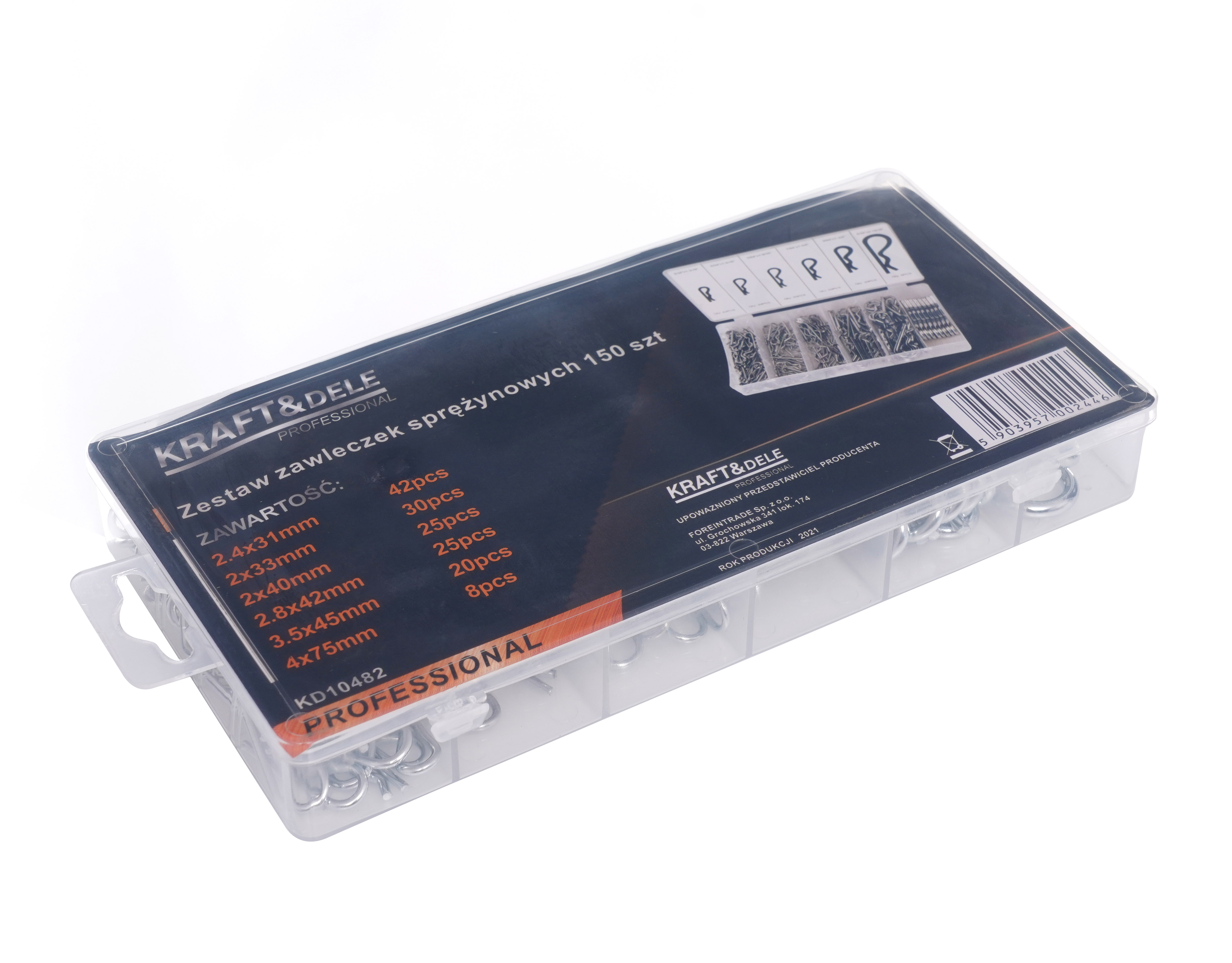 Profesionální sada pružinových pojistek značky Kraft&Dele model KD10482 se používá k zabezpečení proti sklouznutí součástí umístěných na osách, hřídelích, čepy nebo šroubech atd.