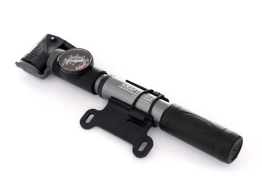 Malá velikost a držák na rám umožňují snadné přenášení a skladování. Pumpa má vestavěný manometr, který umožňuje stanovit tlak v pumpovaném předmětu.