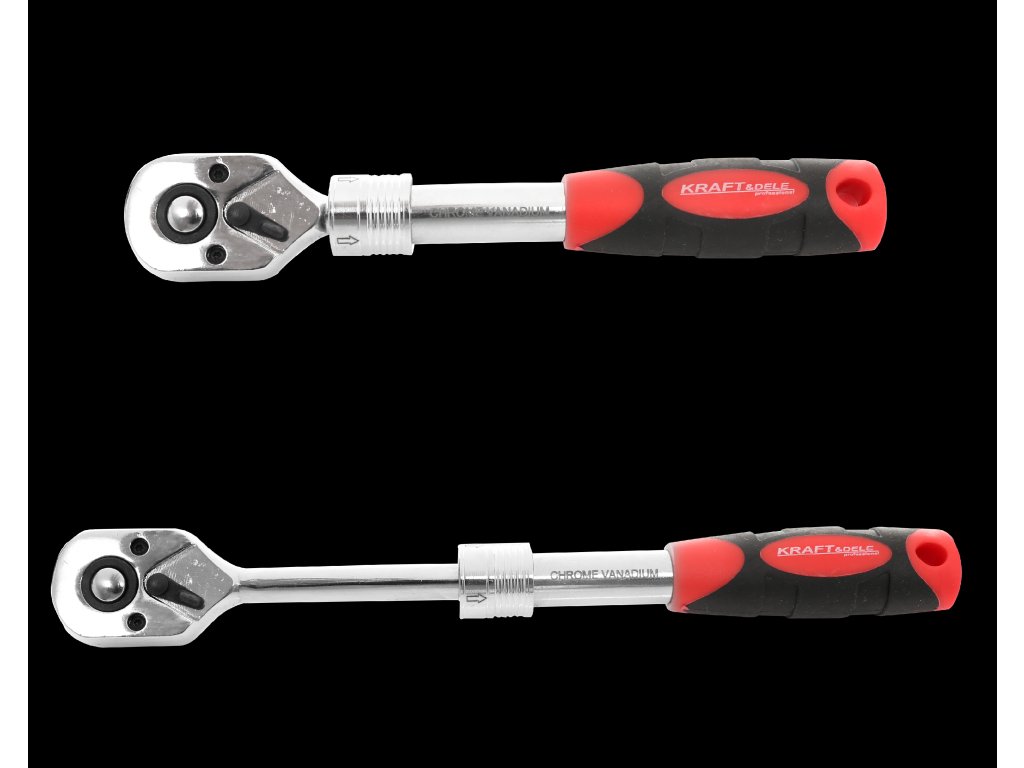 Teleskopická ráčna Kraft&Dele ve velikosti 1/2", vyrobená z pevné chrom-vanadiové oceli, která zaručuje vysokou odolnost.