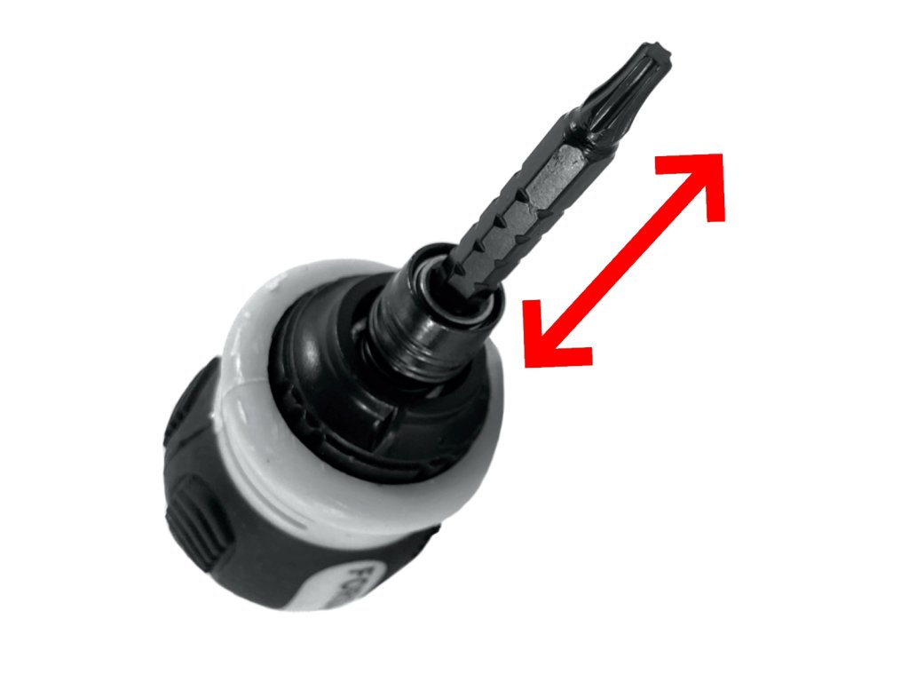 - Dvoustranná ráčna s přepínačem, rychloupínací držák s nastavením vysunutí bitů