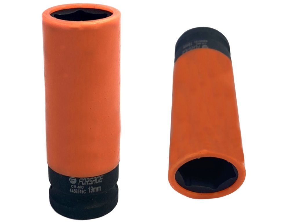Dlouhá tenkostěnná rázová hlavice s ochrannou tulejí 1/2" 19 mm × 85 mm, 6hranná