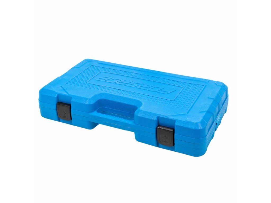 Sada obsahuje 26 dílů. Všechny nástavce a adaptéry jsou uloženy v praktickém plastovém kufříku, který zajišťuje bezpečný transport bez možnosti samovolného otevření.