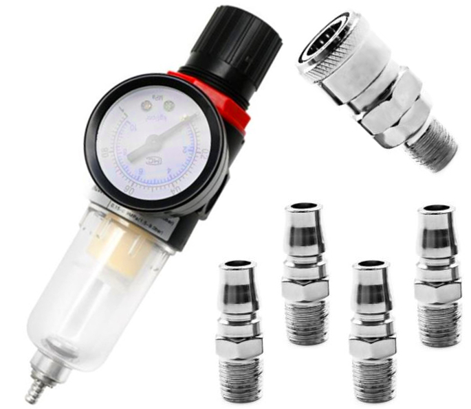 Profesionální redukční ventil s odlučovačem vody od firmy Kraft&Dele, model KD1495, redukuje a udržuje stálý pracovní tlak potřebný k správnému provozu pneumatických zařízení, jako jsou lakýrnické pistole, pistole na nafukování nebo rázové klíče.