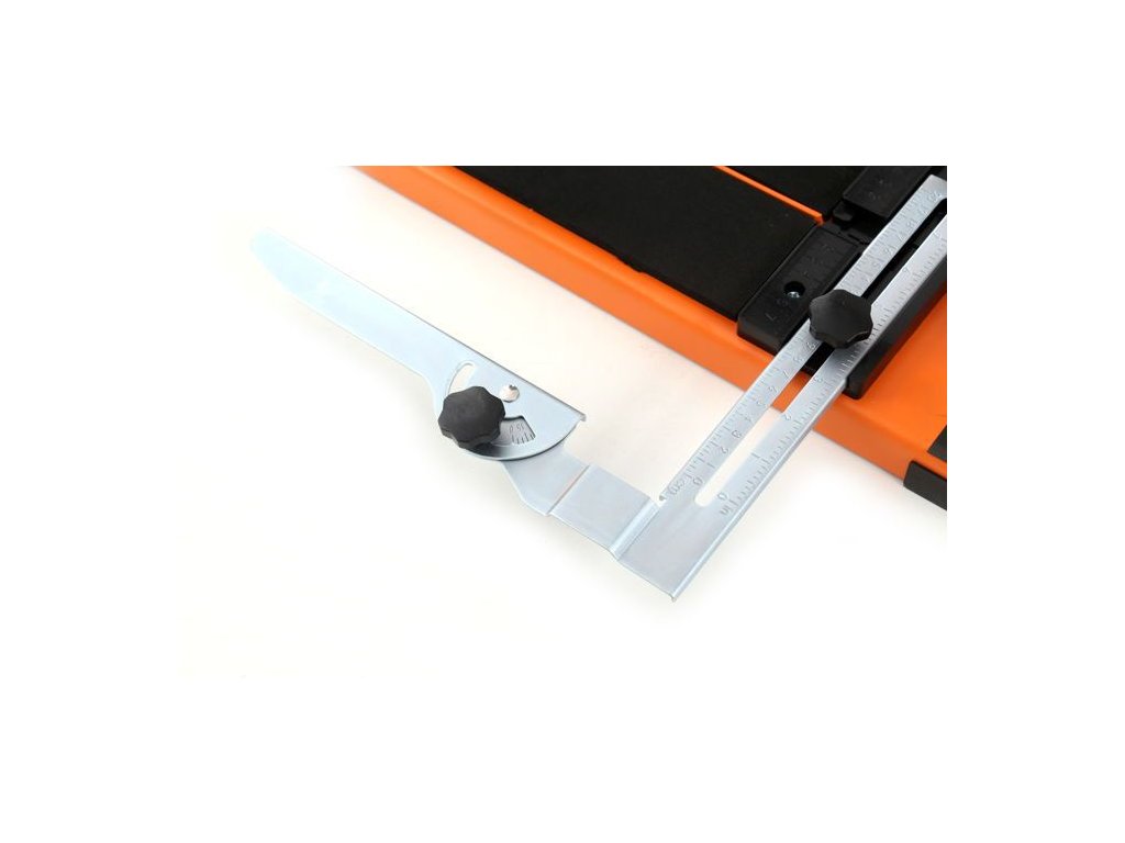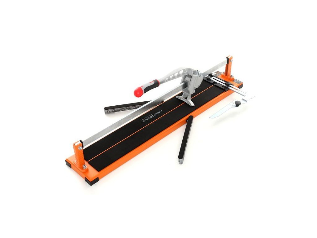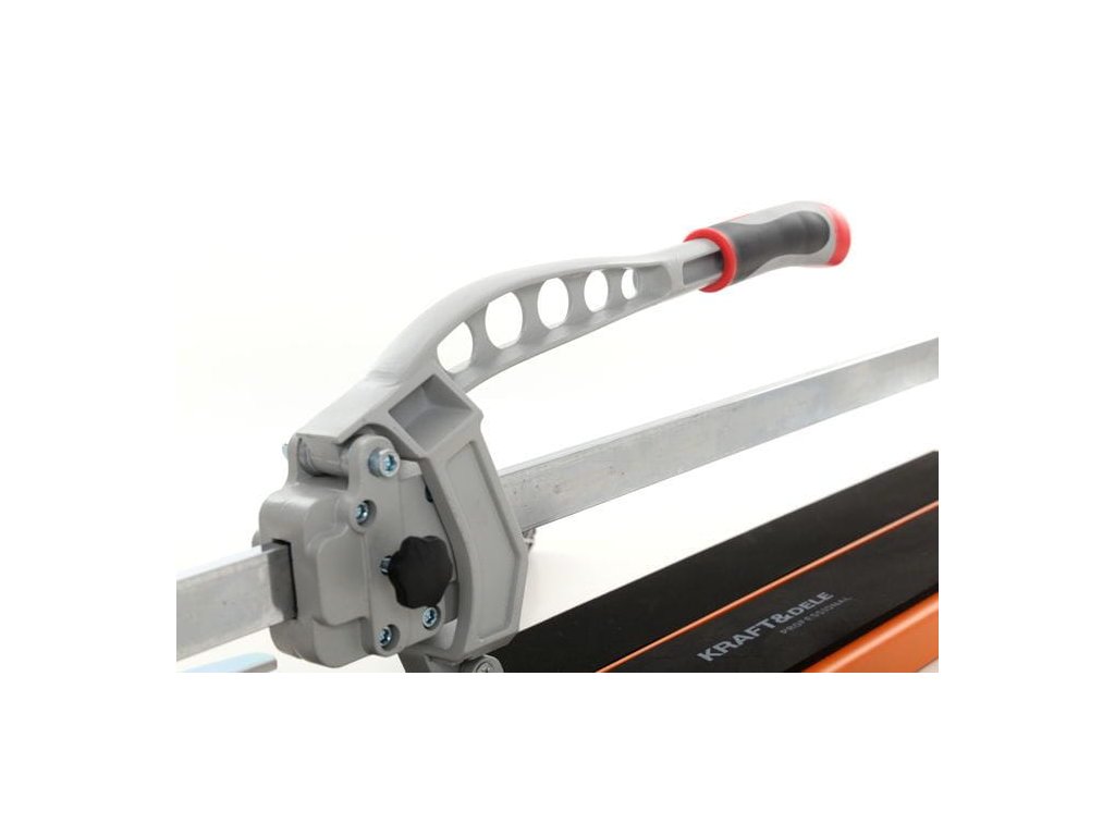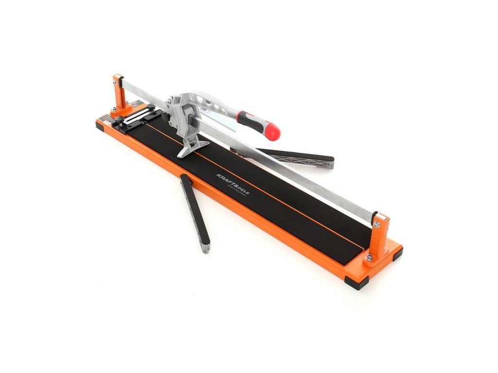Řezačka na dlažbu KD1579 značky Kraft&Dele se skládá ze stabilní podložky vyrobené z pevného ocelového plechu potaženého vrstvou technické mikropy, dvou rovnoběžných vodítek a po nich posuvného řezacího ústrojí. Obsahuje kotoučový nůž o průměru 16 mm ze speciálně tvrzených slinutých karbidů. Díky pohyblivému úhloměru připevněnému k podstavě je možné řezat dlaždice pod libovolným úhlem. Pevná a stabilní konstrukce umožňuje využití zařízení při rekonstrukčních a obkladačských pracích na amatérské i profesionální úrovni. Velká velikost podložky umožňuje řezání největších standardních dlaždic.