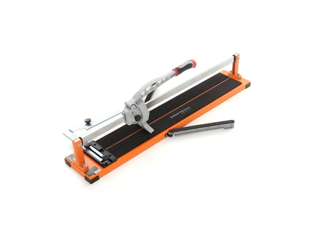 Řezačka na dlažbu KD1578 značky Kraft&Dele se skládá ze stabilní základny vyrobené z tlustého ocelového plechu s vrstvou technické mikrogumy, dvou rovnoběžných vedení a pohyblivého řezného kompletu.