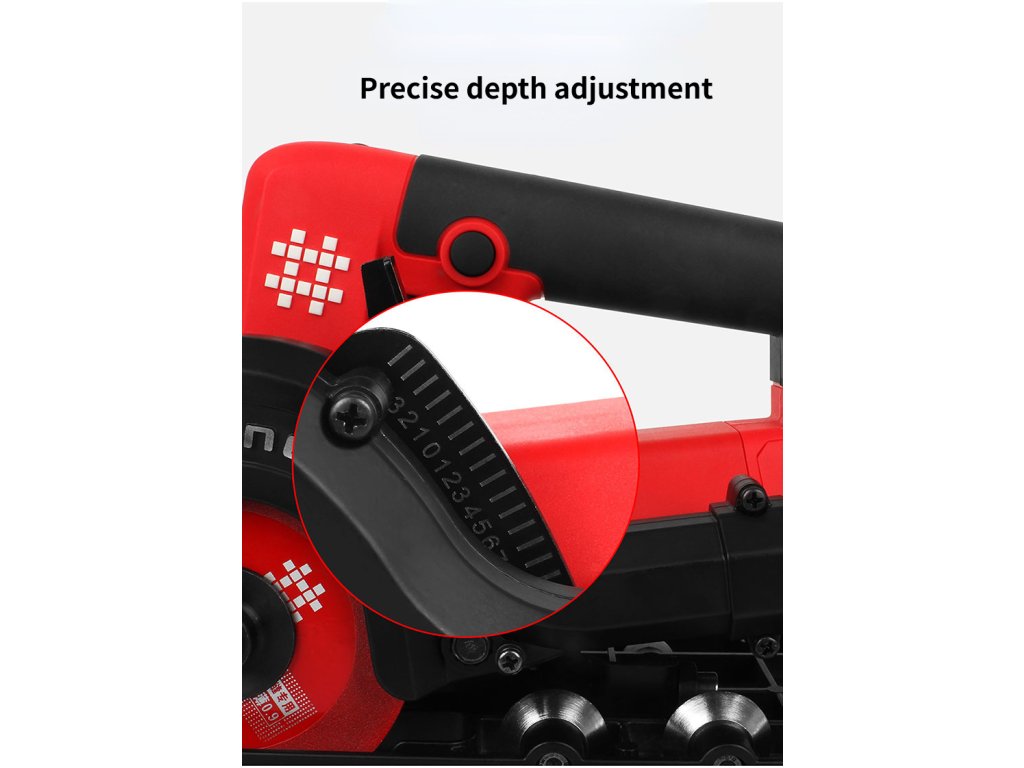 - Možnost regulace hloubky řezu nahoru-dolu. Zámková páka umožňuje snadné uvolnění a nastavení disku na požadovanou výšku.