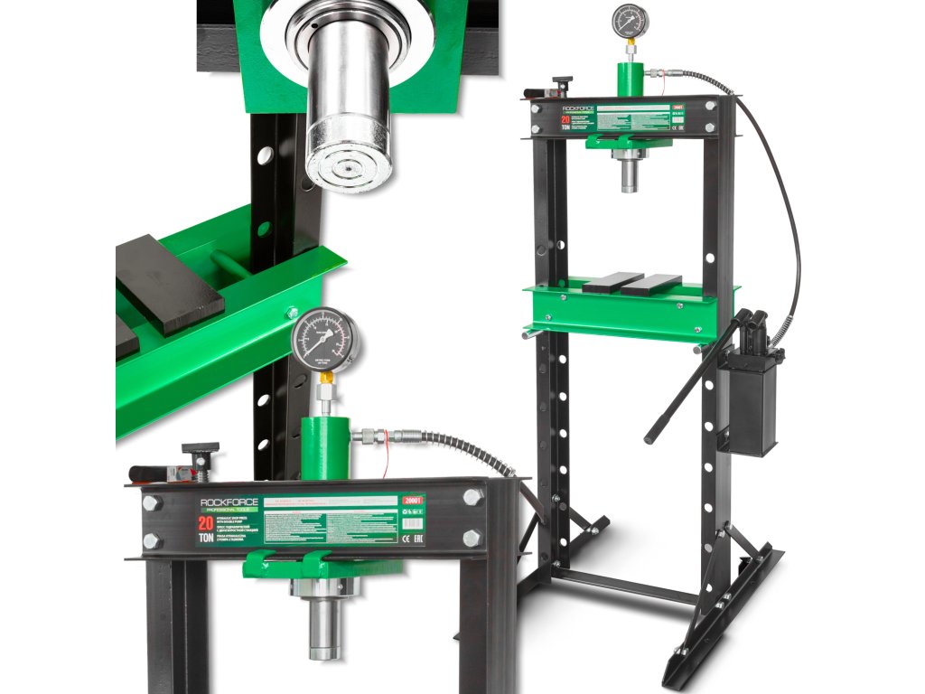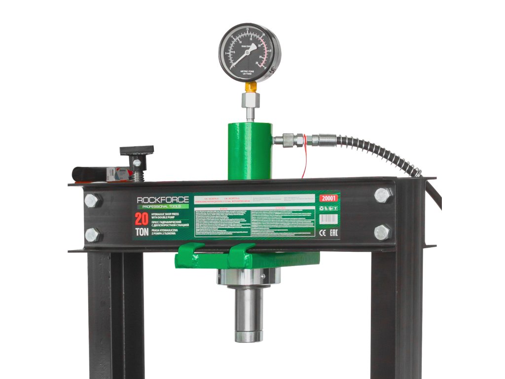 ROCKFORCE Hydraulický dílenský lis 20 t s hydraulickou pumpou a manometrem, včetně podpěrných bloků