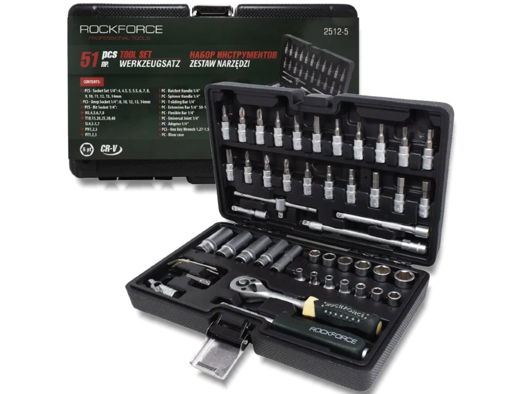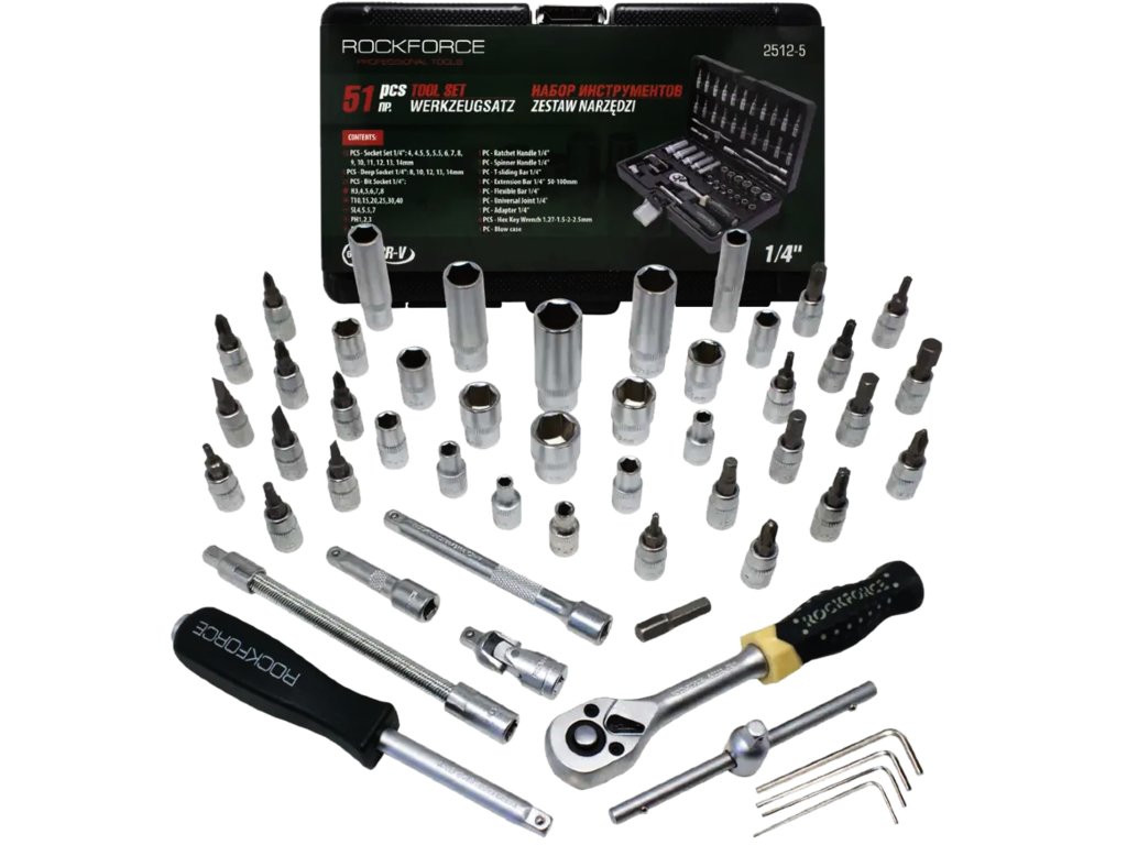 ROCKFORCE Sada 6hranných nástrčných hlavic 51 dílů, 1/4", 4–14 mm