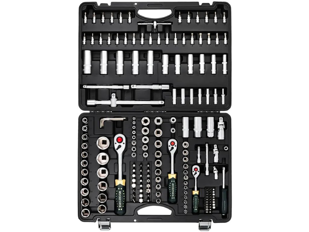 Kompletní, robustní a univerzální sada nástrčných klíčů a příslušenství navržená pro autoservisy, dílny a náročné domácí kutily. Díky širokému rozsahu velikostí a typů koncovek umožňuje provádět různé montážní a opravárenské práce – od přesných úkonů až po servis těžších dílů.