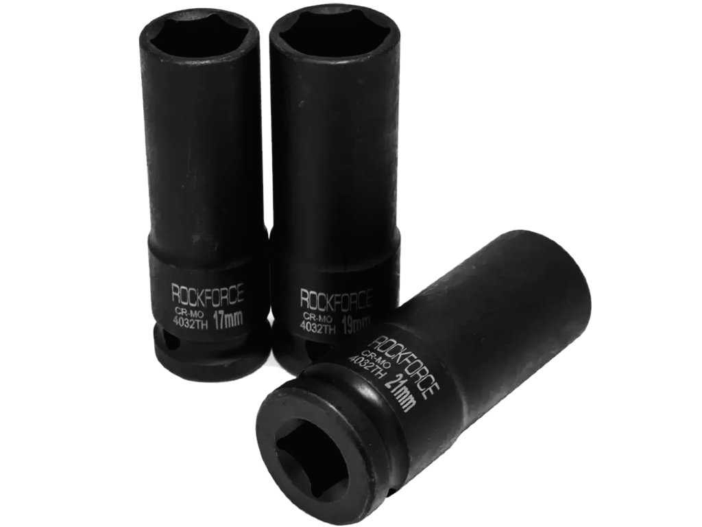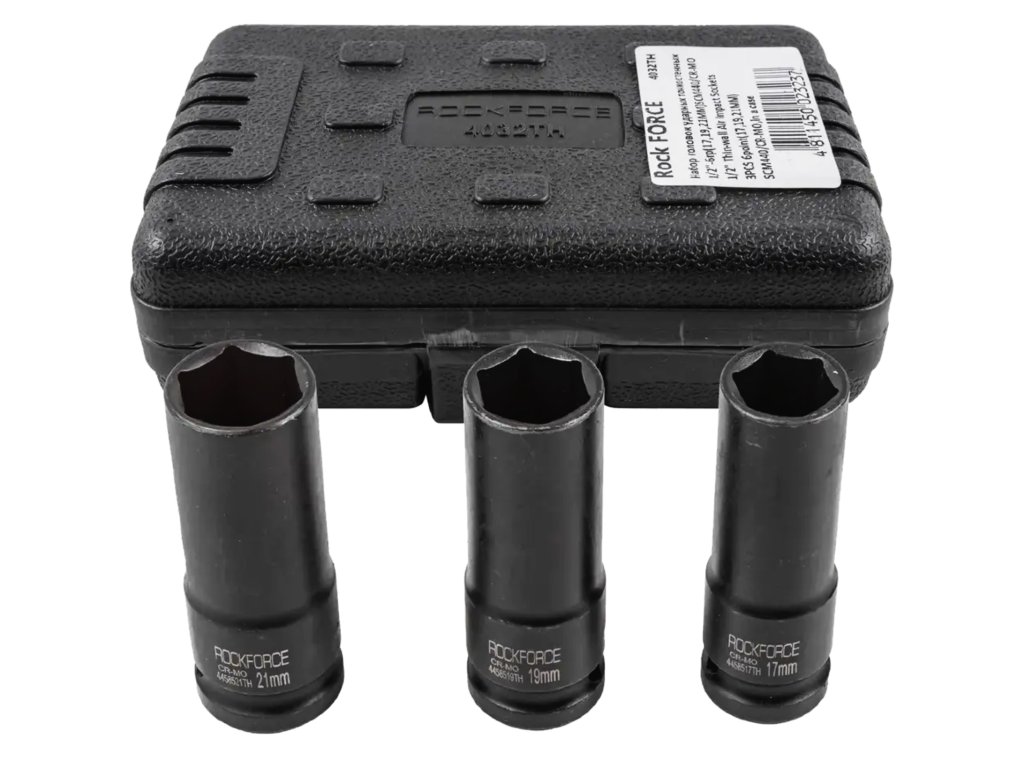 ROCKFORCE Sada tenkostěnných rázových nástrčných hlavic 1/2", 6hranných, 3 ks